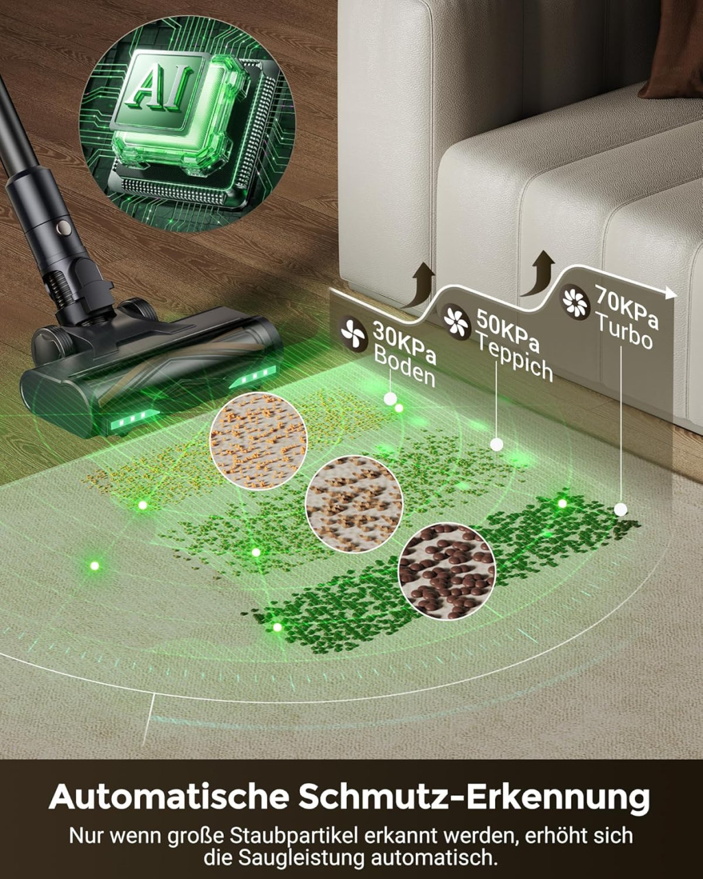 • Kiváló szívóerő: 70 kPa szívóerő professzionális szintű tisztítást biztosít