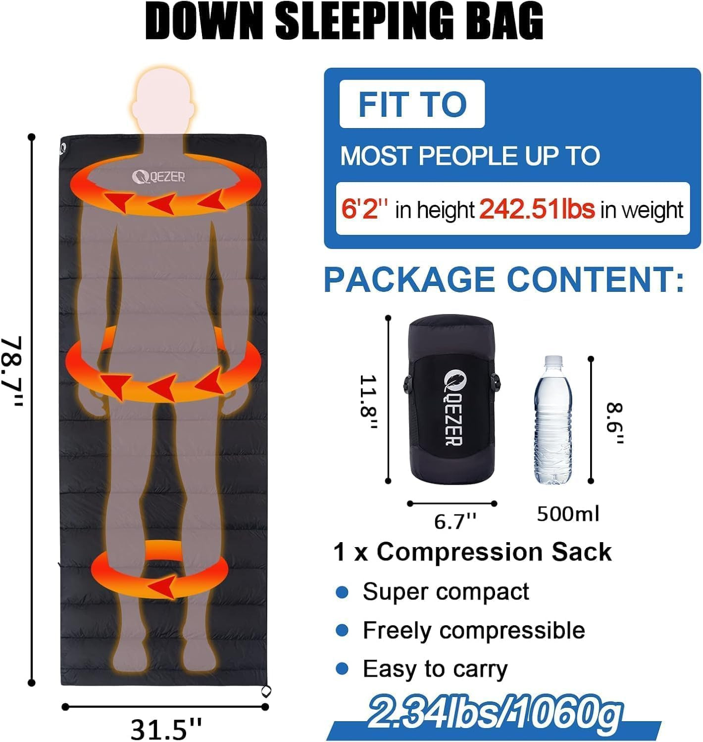 QEZER Ultraleicht Daunenschlafsack