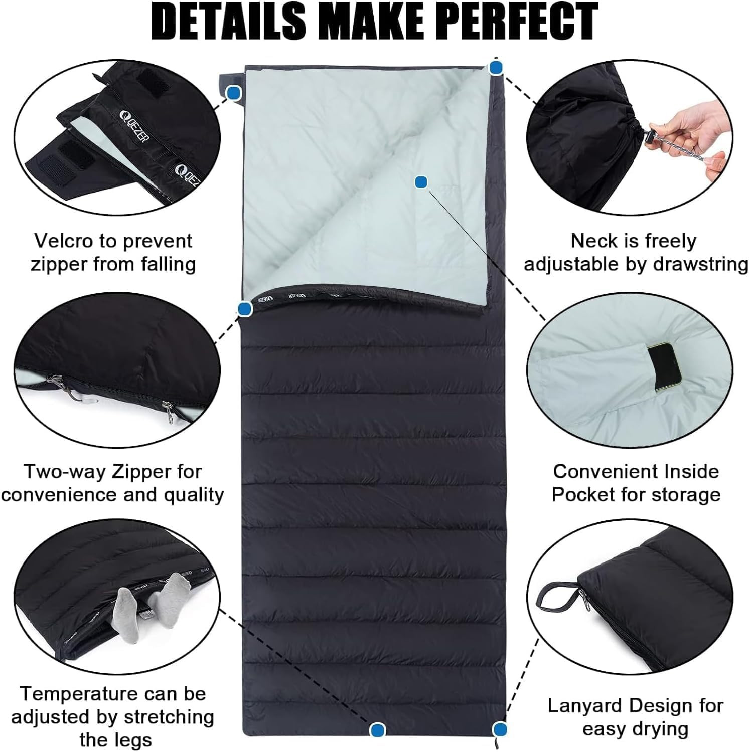 QEZER daunenschlafsack részletes nézet
