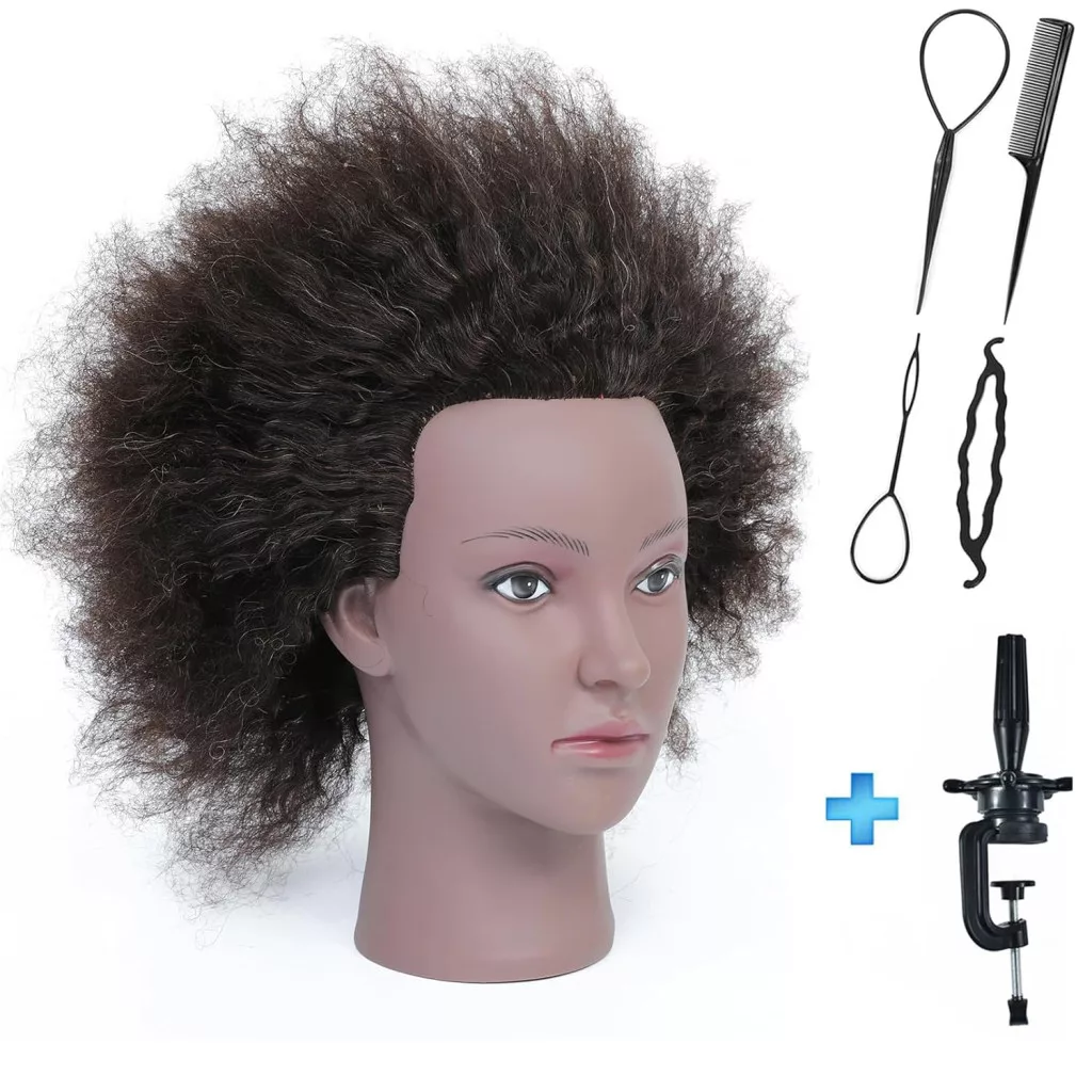 A RUISIMEI afro gyakorlófej 100% valódi emberi hajjal ideális fodrászok és tanulók számára: