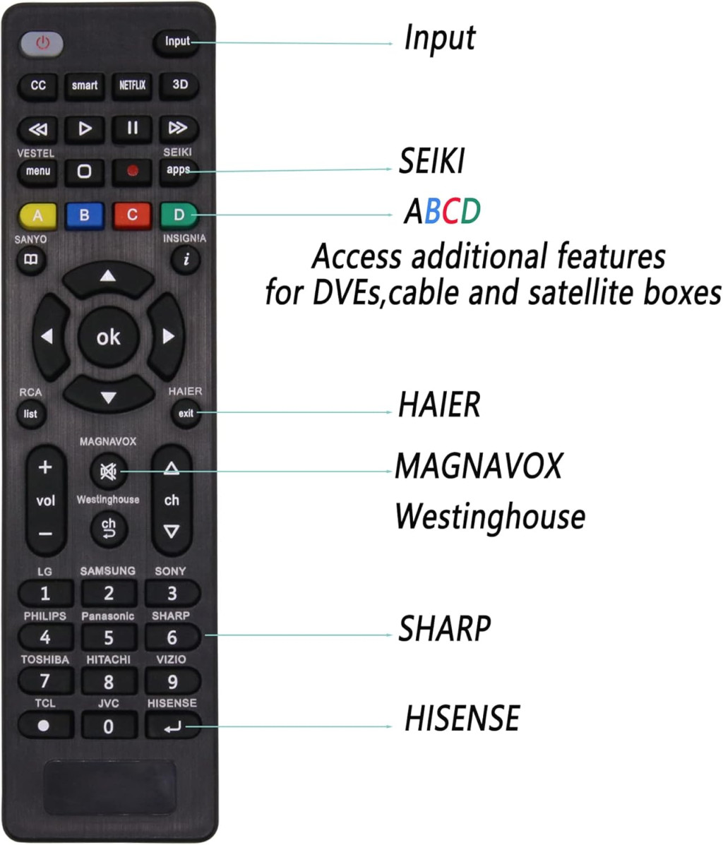 Ez az univerzális távirányító a tökéletes megoldás minden háztartás számára, ahol különböző márkájú televíziók találhatók. A Riry távirányító 12 népszerű TV márkával kompatibilis, beleértve a Samsung, Sony, LG, Philips, Panasonic, JVC, Sharp, Hitachi, Vizio, TCL, Toshiba és Hisense készülékeket. A modern háztartásokban gyakran előfordul, hogy több különböző márkájú TV található, és ez a távirányító egyetlen eszközzel megoldja az összes vezérlési igényt.