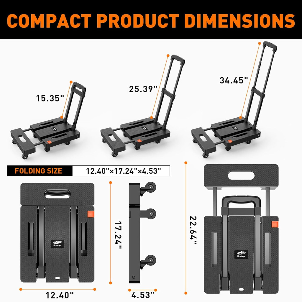 Az összecsukható kialakítás azt jelenti, hogy nem kell állandóan helyet foglalnia otthonában, míg a 225 kg-os teherbírás biztosítja, hogy szinte bármit szállíthat. A hat forgó kerék és a teleszkópos fogantyú kombinációja pedig azt garantálja, hogy a szállítás nem lesz fárasztó, függetlenül attól, hogy milyen magas vagy alacsony a felhasználó.