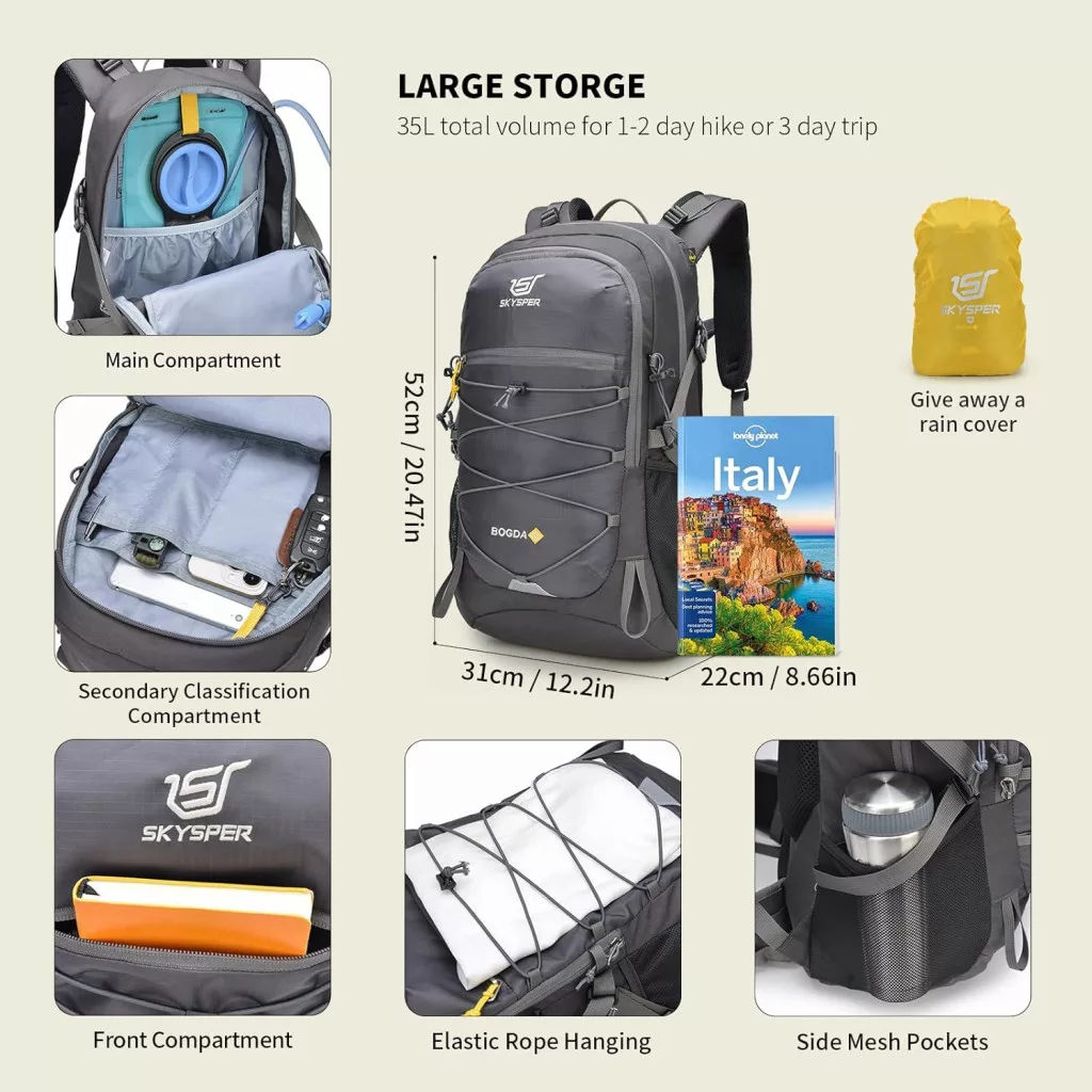 - 35 literes kapacitás: Ideális méret egy vagy több napos túrákhoz, elegendő hely az összes szükséges felszereléshez