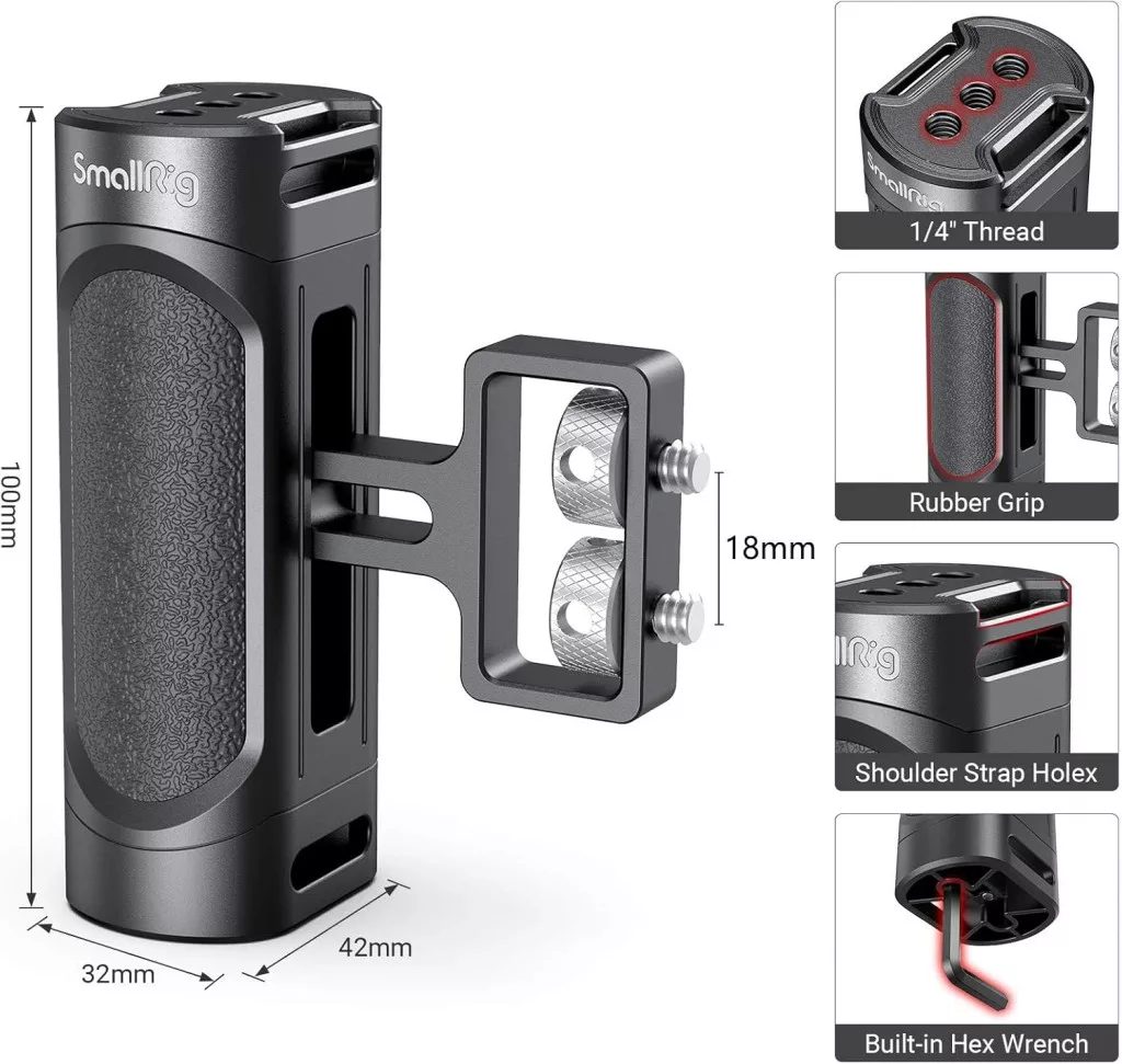 - Professzionális oldalsó fogantyúk: A 2916 mini verzió, ideális a kompakt kamerákhoz. Nagyobb kamerákhoz a SMALLRIG nagyobb fogantyúit ajánljuk.