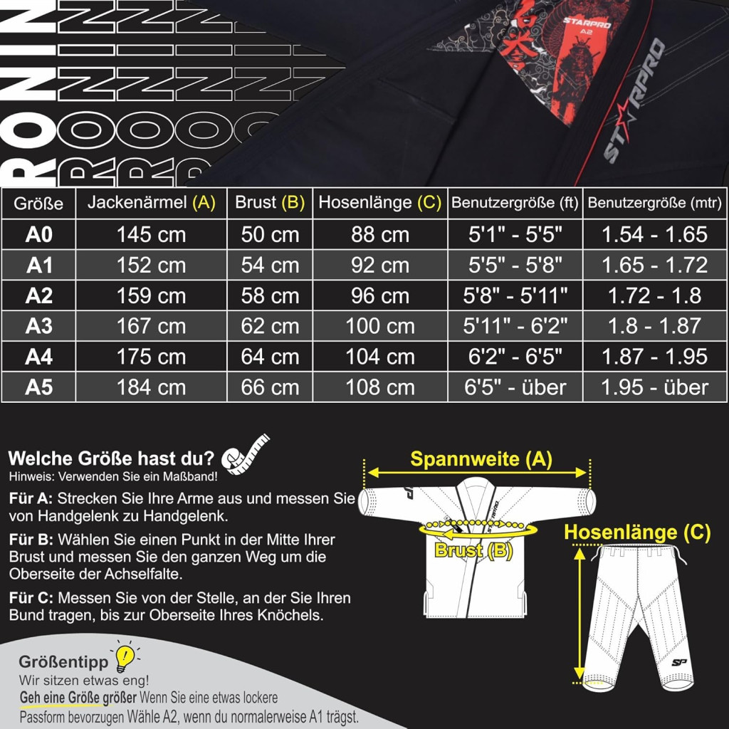 A Starpro Ronin BJJ Gi 355g egy kiváló választás minden harcművész számára, aki megbízható, tartós és kényelmes felszerelést keres. A professzionális minőség és a gondos kivitelezés garantálja, hogy ez a gi hosszú éveken át szolgálja majd tulajdonosát, legyen szó edzésekről vagy versenyekről.