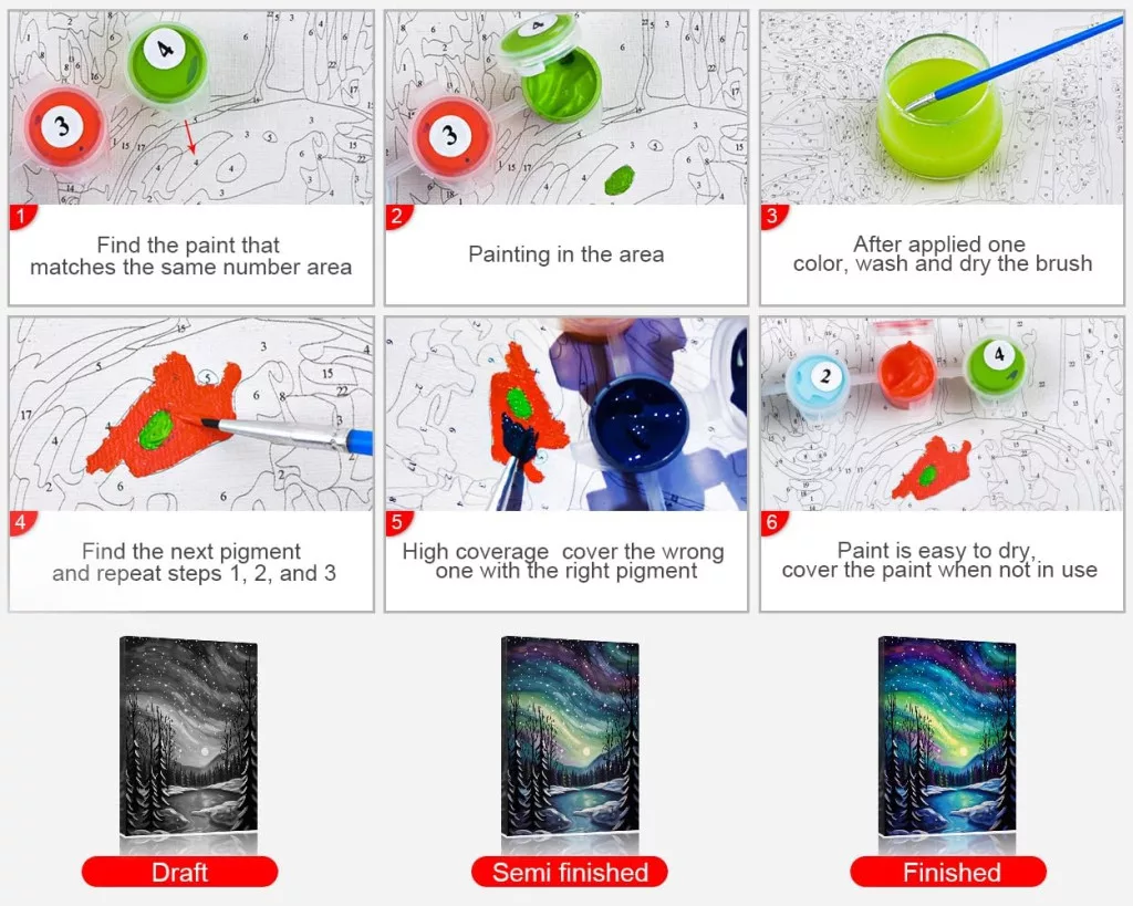 TISHIRON Sarki Fény Számfestő Készlet Felnőtteknek - 16 x 20 cm Termék Áttekintés