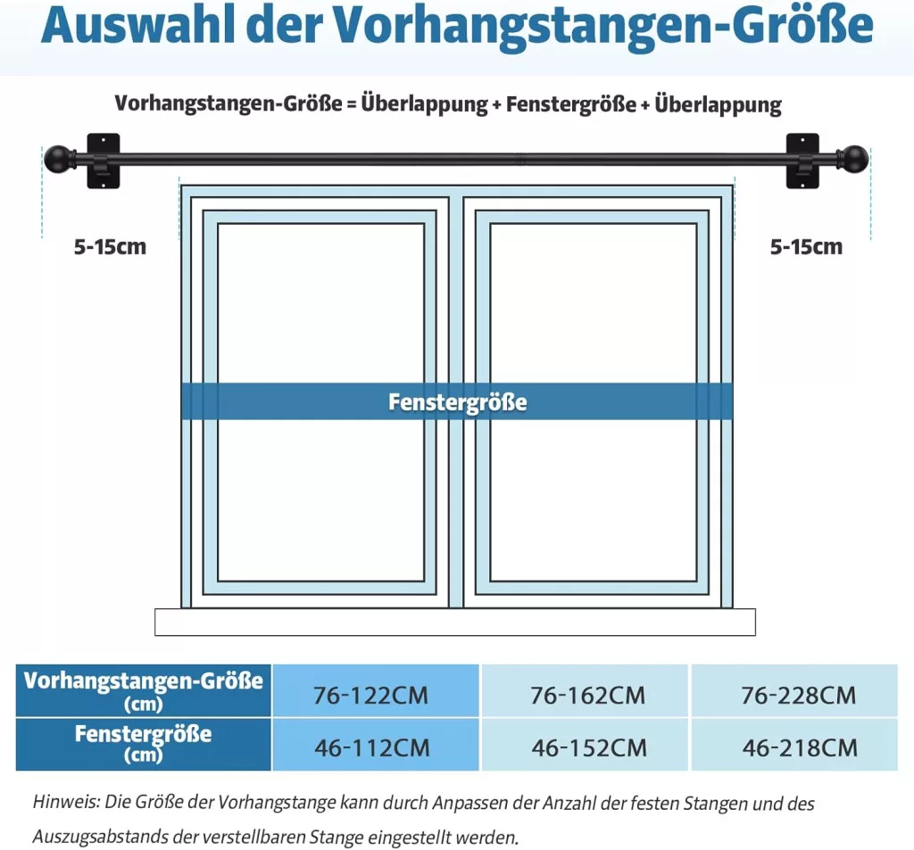 - Extenzibilis hossz: 76-122 cm közötti állítható hosszúság, 46-112 cm széles ablakokhoz ideális
