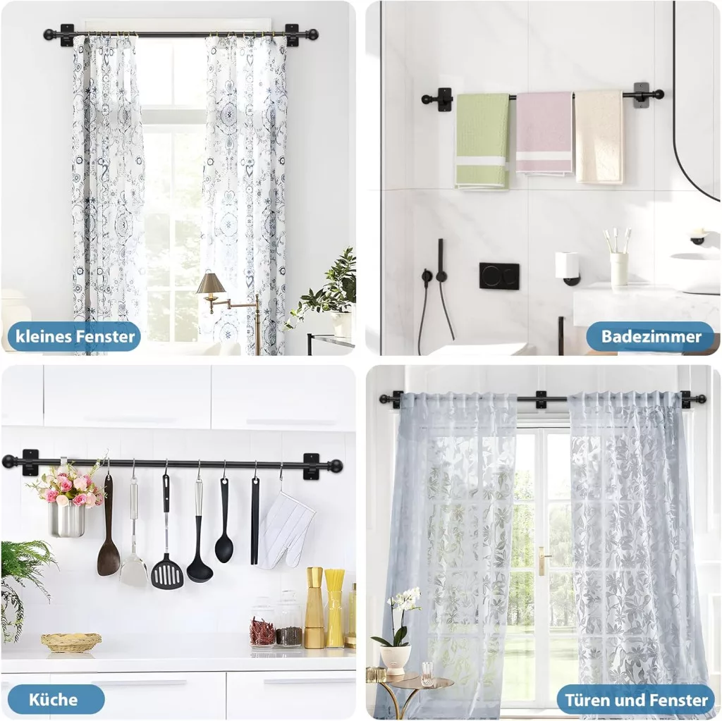 Ez a függönyrúd tökéletes választás lakások, házak, irodák és egyéb helyiségek számára. Ideális a hálószobában, fürdőszobában, konyhában, nappaliban és bármely ablakos helyiségben. Különösen ajánlott bérlakásoknak, mivel nem igényel falat fúrni, így a kiköltözéskor könnyen eltávolítható és nem hagy nyomot. Könnyű és közepes súlyú függönyökhöz, valamint függönyökhöz és függönyökhöz egyaránt alkalmas.