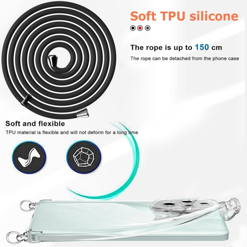 TTSWJBD Mobiltelefon Nyakpánt Honor 200 Pro 5G Készülékhez - Átlátszó Szilikon Tok Levehető Zsinórral