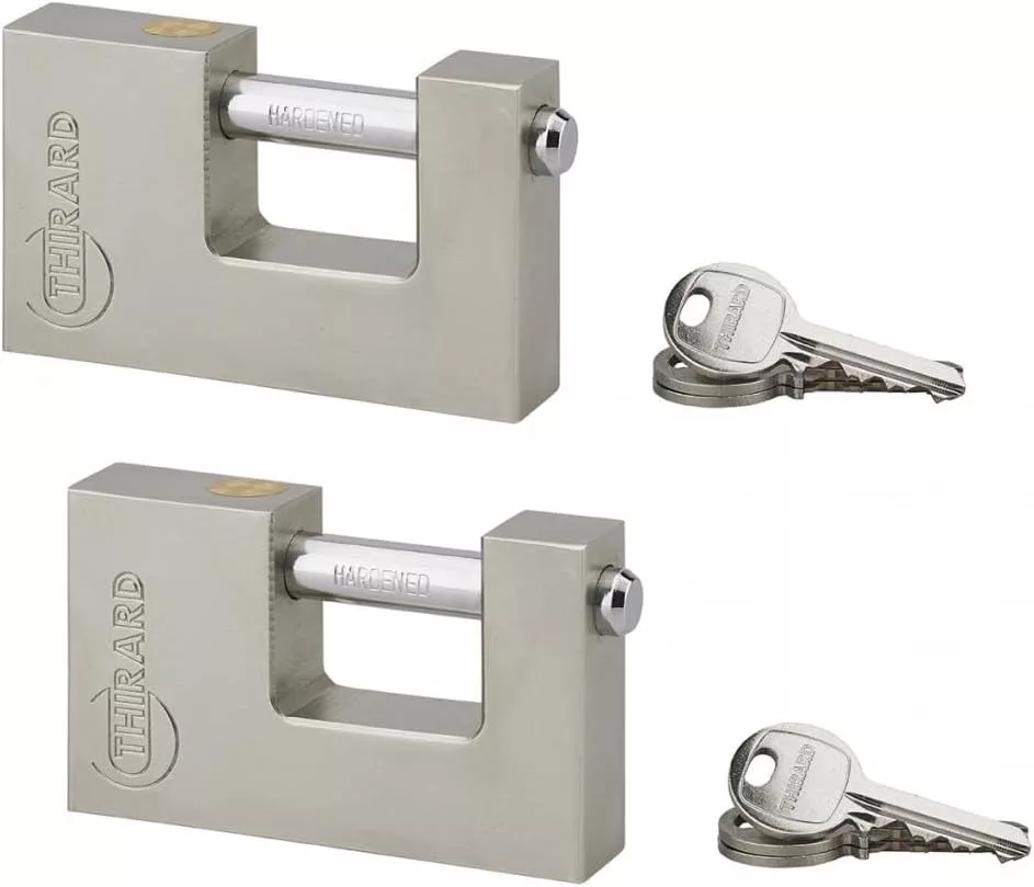 A THIRARD 90mm-es acél lakat szett két darabból áll, amely tökéletes megoldás az otthon és kültéri tárolók védelméhez: