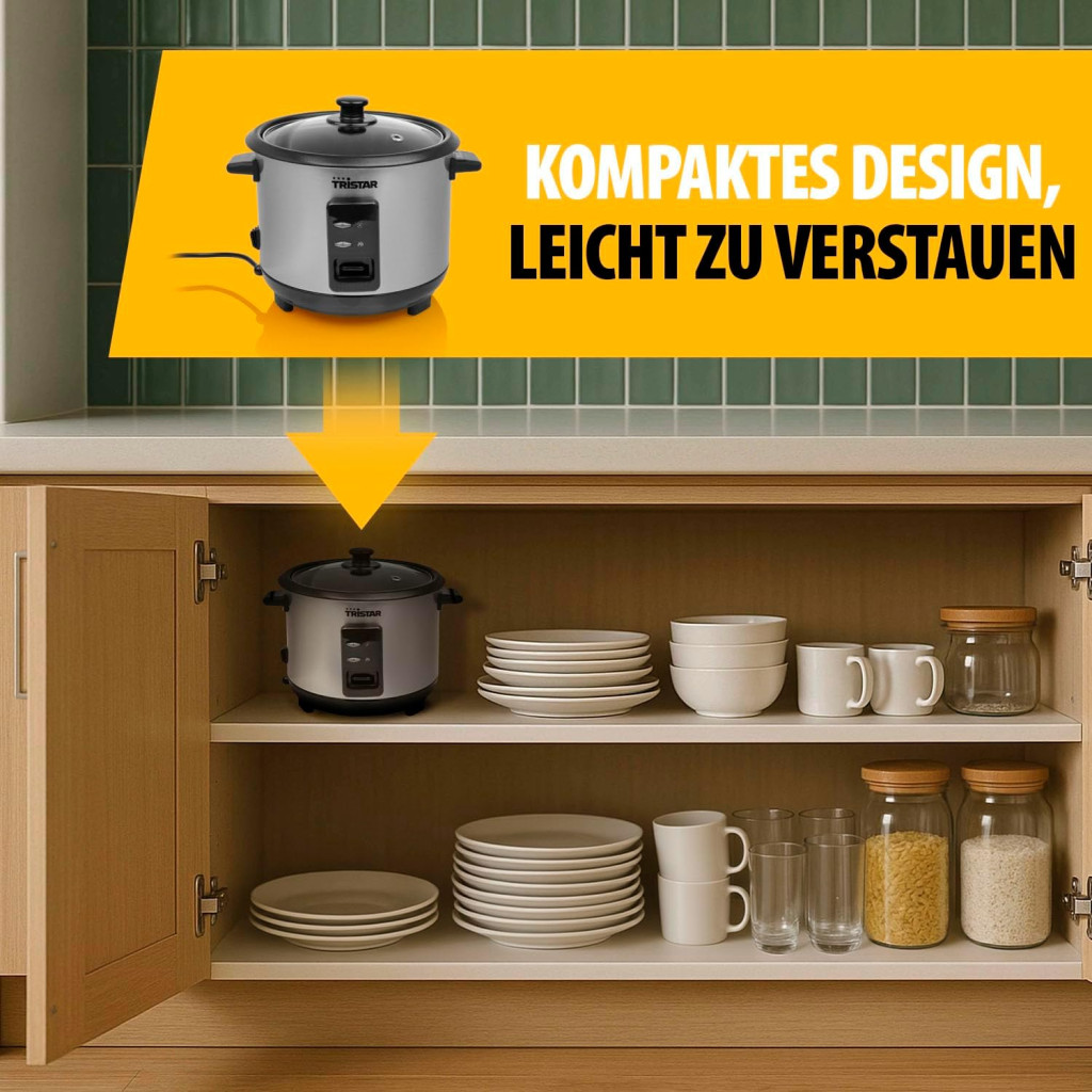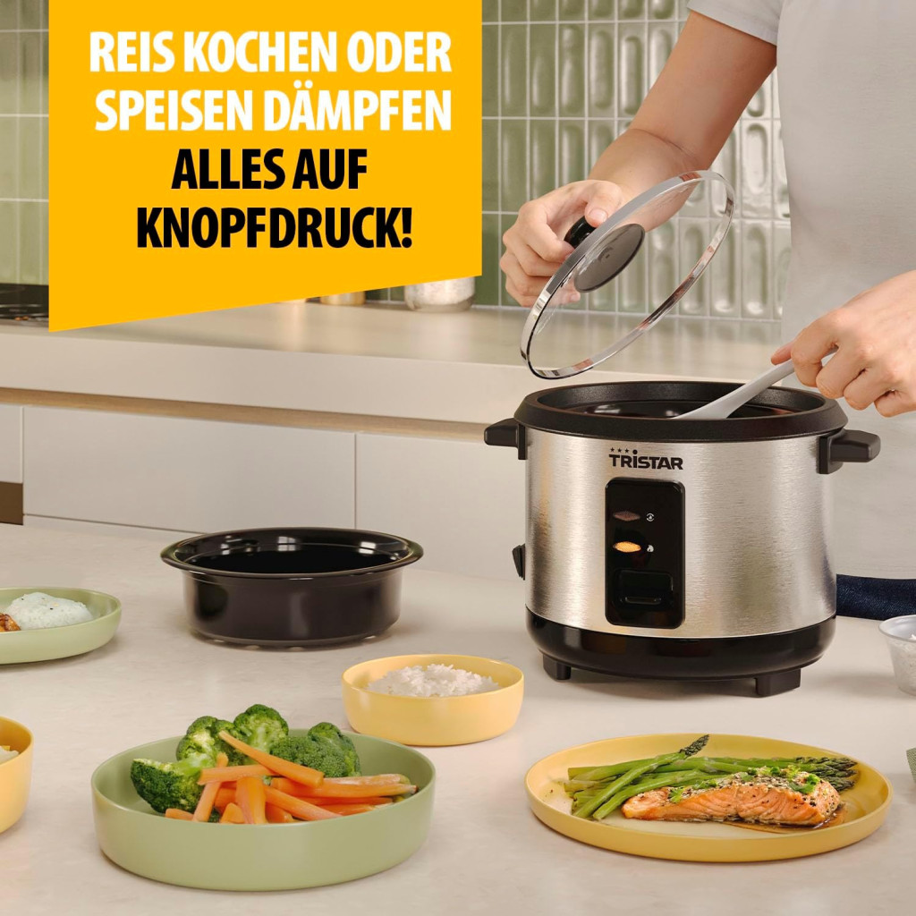 Tristar rizsfőző 1L rozsdamentes acél, tapadásmentes belsővel és melegen tartás funkcióval