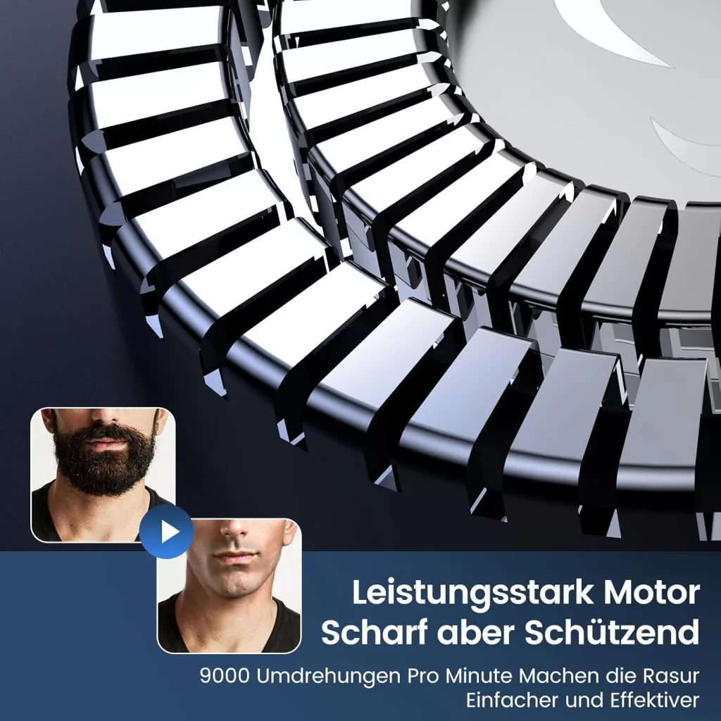 - IPX7 Vízálló Technológia: Nedves és száraz borotválkozásra egyaránt alkalmas. Használható borotválkozási habbal vagy géllel, valamint zuhany alatt is.