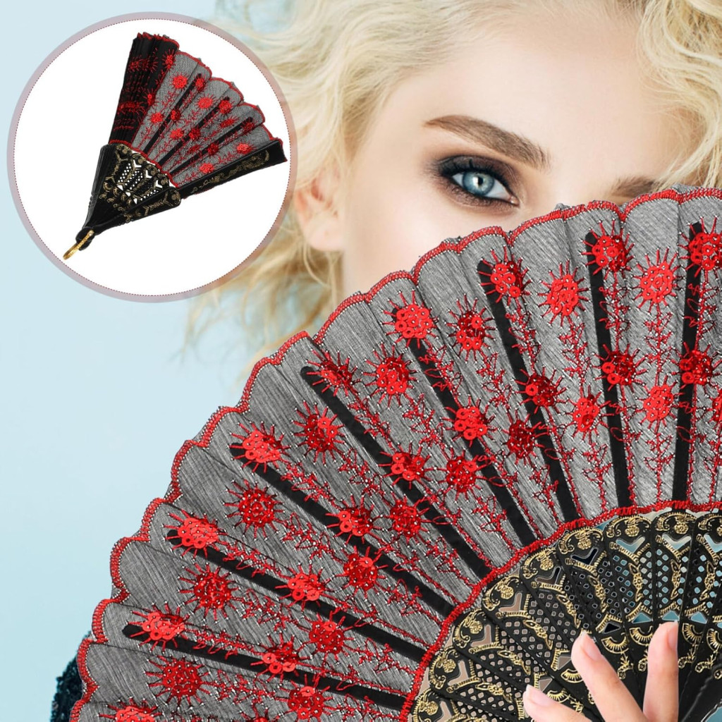 VOSAREA Vintage spanyol csipke legyező piros fekete 1920s jelmez kiegészítő