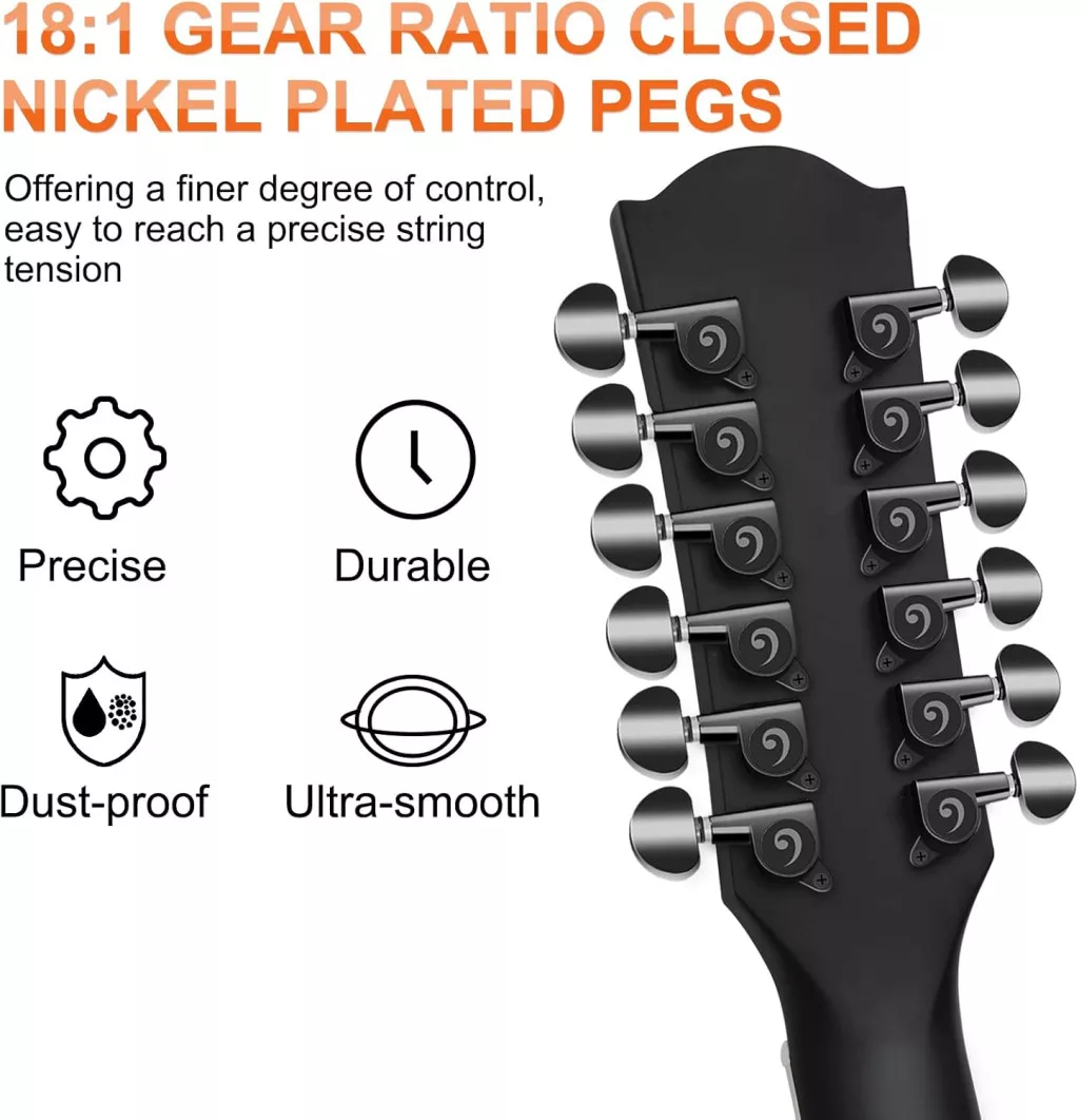 A Vangoa 12 húros gitár számos előnnyel rendelkezik a hasonló kategóriájú gitárokhoz képest: