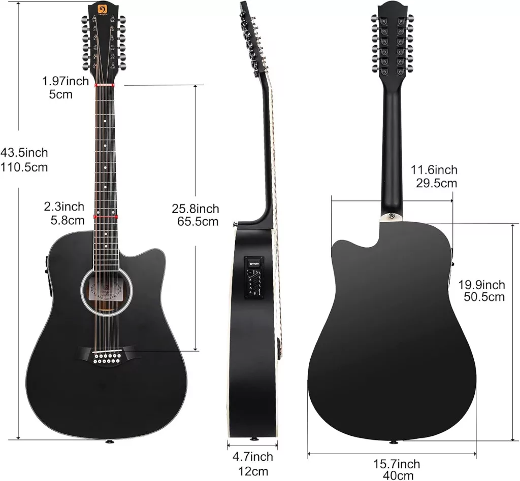 Vangoa 12 Húros Western Gitár Pickup-pal - 41 Hüvelykes Elektroakusztikus Gitár Vangoa 12 Húros Western Gitár Pickup-pal és 4 Sávos EQ-val