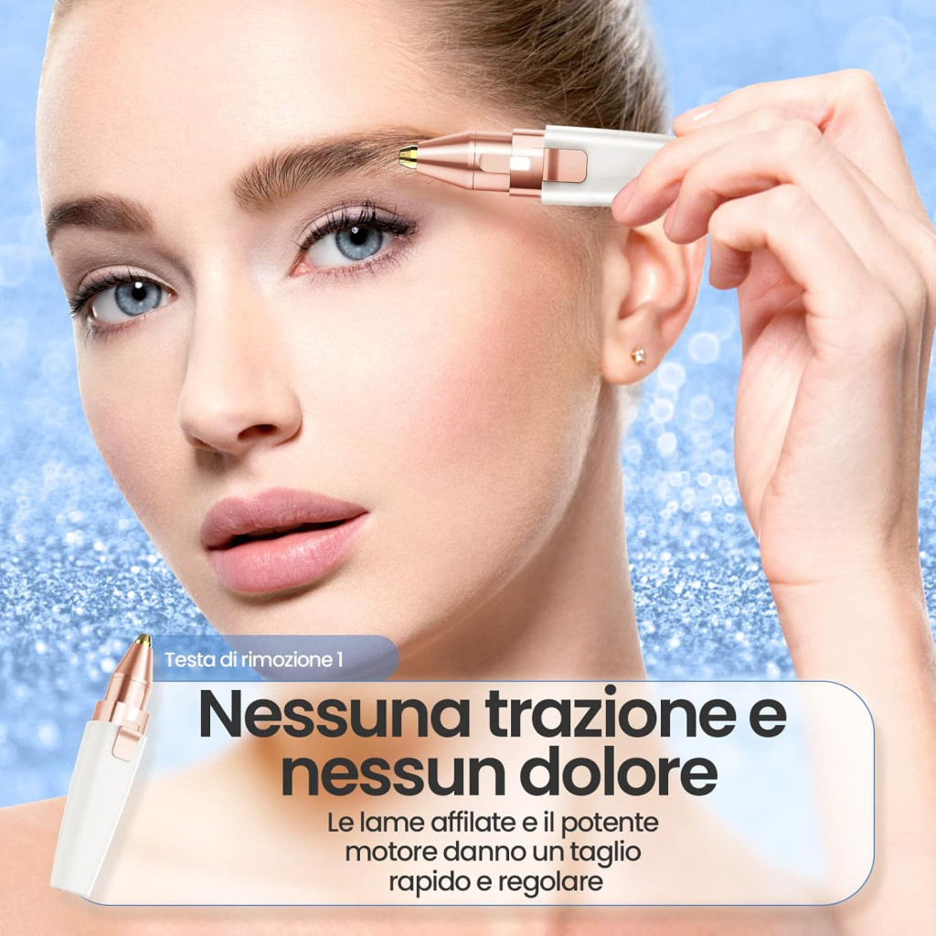 - 2 az 1-ben megoldás: Két cserélhető fejjel rendelkezik - egy precíziós fej a szemöldökhöz, orrhoz és fülekhez, valamint egy nagyobb kerek fej az arc, arcszőrzet, ajak és hónalj szőrtelenítéséhez