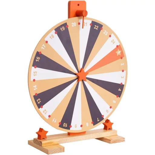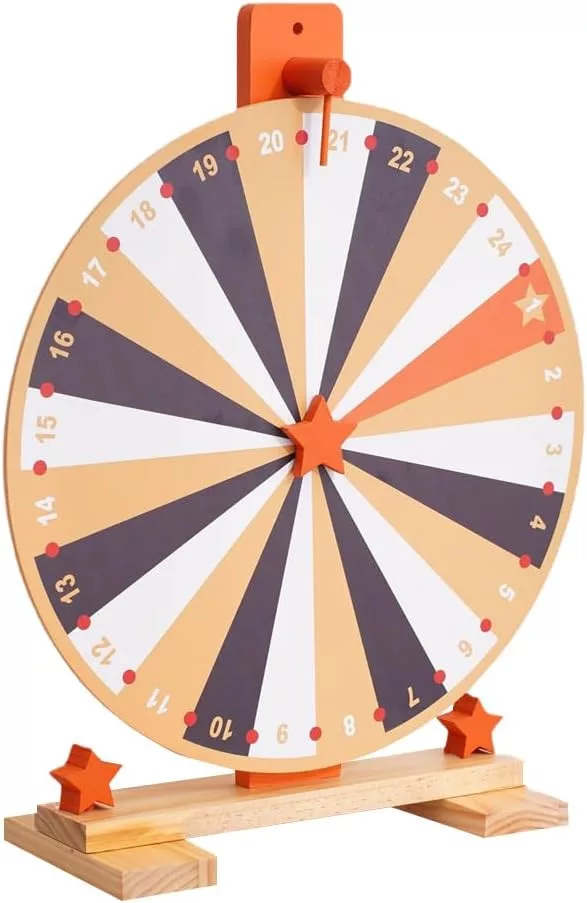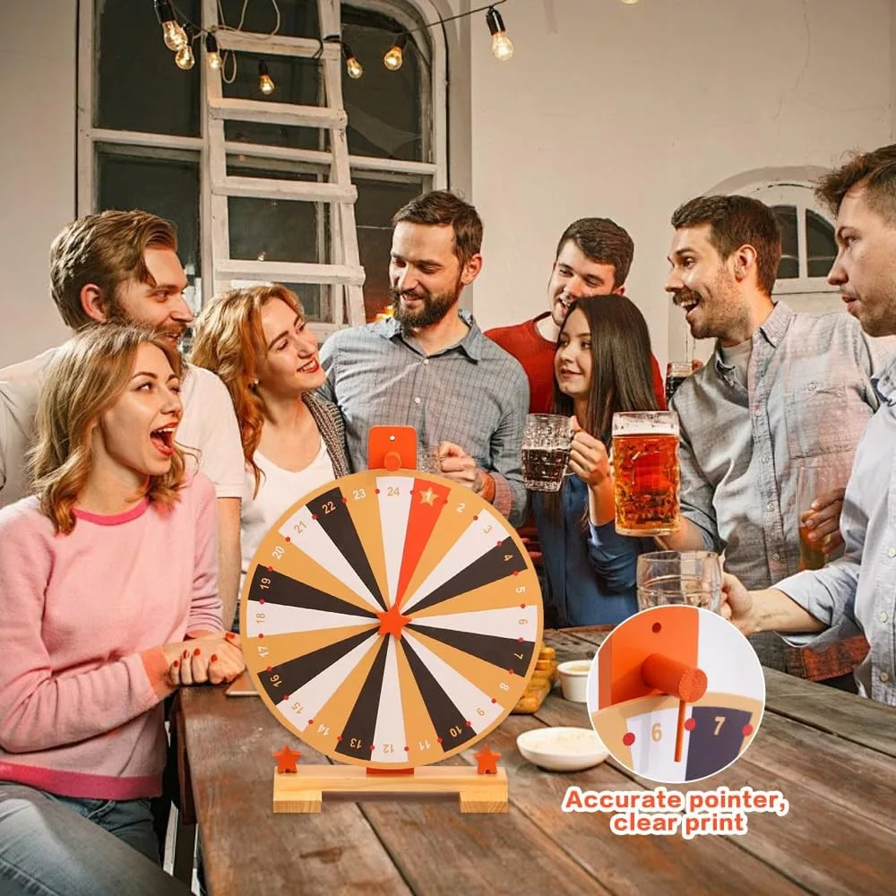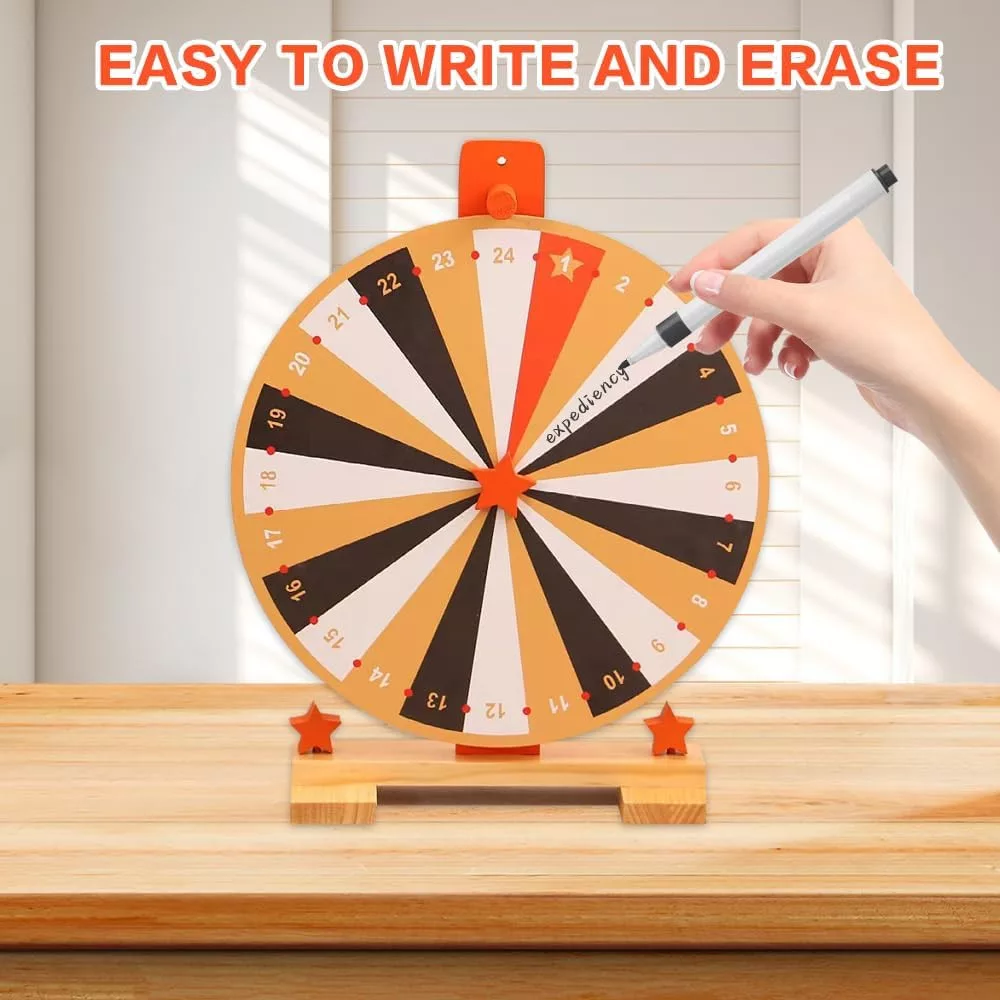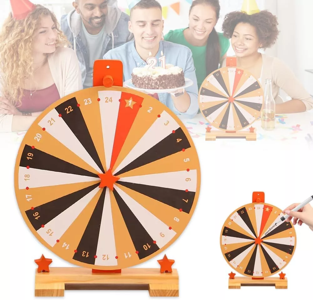 WDKXCN 37 cm-es Szerencsekerék 24 Rekesszel - Forgatható Játék Táblával és Filctollal - Fa Nyereménykerék Karneválokra, Partikra, Szójátékok