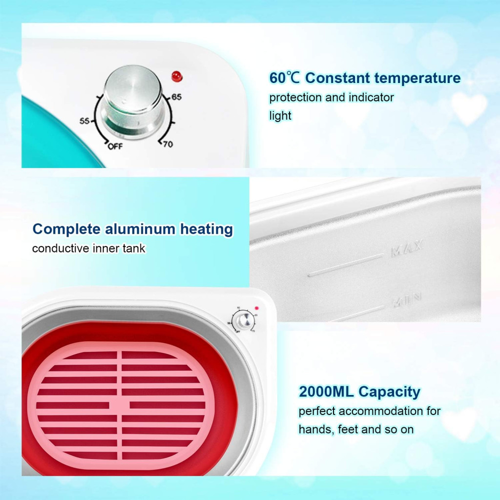A paraffinvaj fürdő egy professzionális szépségápolási eszköz, amely otthonában biztosítja a szalon minőségű kezeléseket. Ez a komplett készlet ideális választás azok számára, akik szeretnék regenerálni és ápolni bőrüket, különösen a kezeket és lábakat. Az intelligens hőmérséklet-szabályozás és a nagy kapacitás garantálja a biztonságos és hatékony kezeléseket.