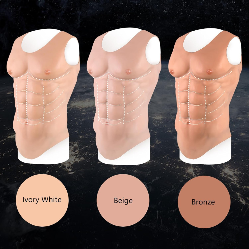 • Reális Izomvonalak: Részletezett mellizom és hasizom-mintázat, amely természetes és nem merev