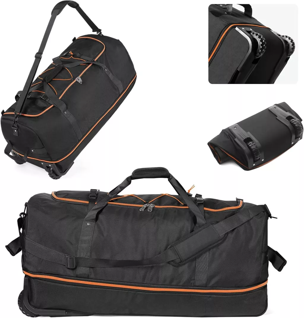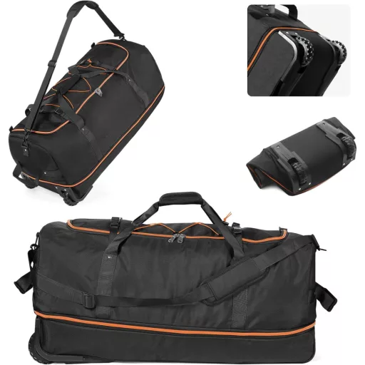 YHYEH 32 Inch Utazótáska Kerekekkel, Bővíthető 110-140L, Puha Oldalú Gurulós Bőrönd Fekete/Narancs