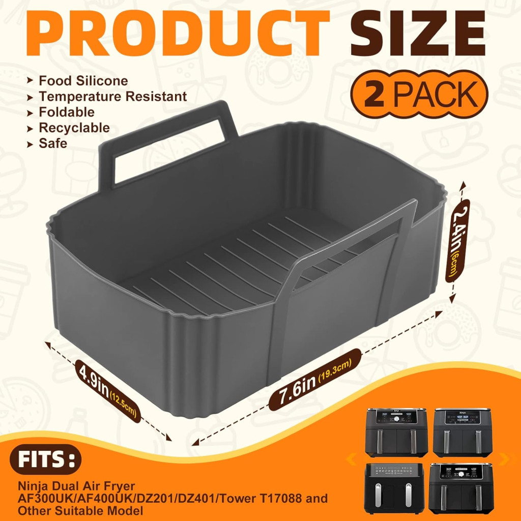 A YOGINGO szilikon légfriteuse betét egy forradalmi megoldás a légfriteuse használatához. Ez a prémium minőségű, 100% élelmiszer-biztos szilikon forma teljesen megváltoztatja a főzési és tisztítási élményt. A készlet 2 darab szilikon betétet tartalmaz, amelyek tökéletesen illeszkednek a Ninja Dual Zone AF300EU, AF400EU és más 8 literes kettős zónás légfritőzőkhöz.