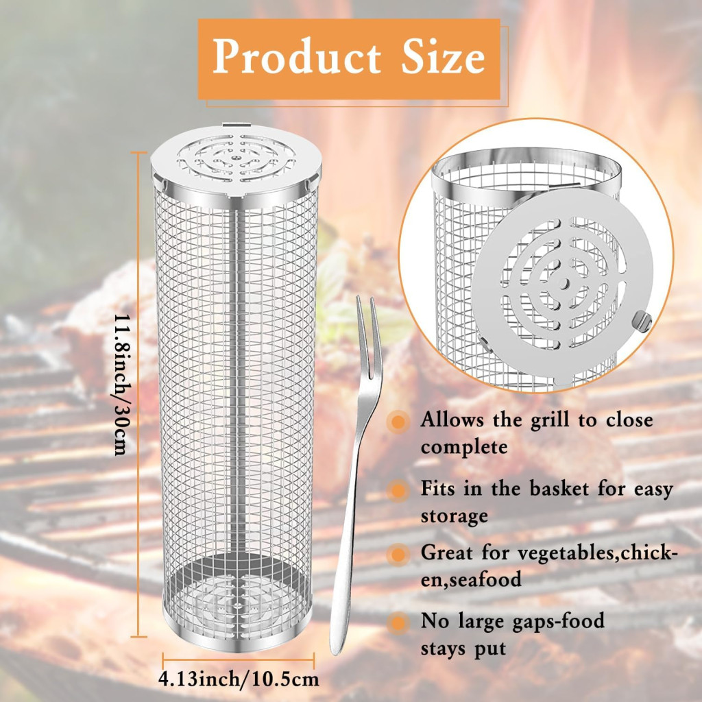 Fedezze fel a grillezés új dimenzióját a YumSur 2 darabos forgatható grillkosár készlettel! Ez a prémium minőségű, rozsdamentes acélból készült grillkosár szett forradalmasítja a szabadtéri sütés élményét. A hengeres kialakításnak köszönhetően többé nem kell aggódnia, hogy a kisebb zöldségek vagy húsdarabok áthullanak a grillrácson. A forgatható mechanizmus biztosítja az egyenletes hőeloszlást, így minden falat tökéletesen átsül, miközben megőrzi az ételek természetes ízét és nedvességtartalmát.