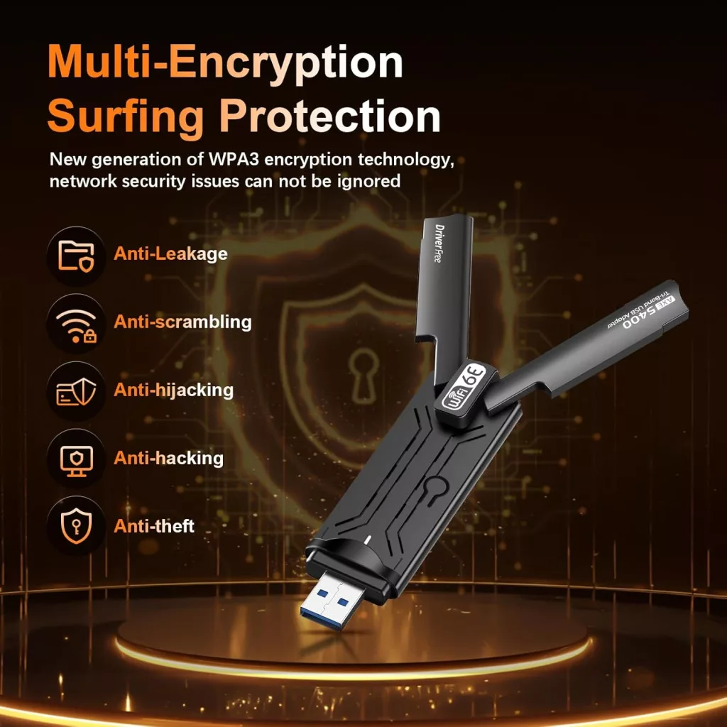 Az USB 3.0 csatlakozás és a plug & play telepítés megkönnyíti a használatot, míg a WPA3 titkosítás biztosítja az adatok biztonságát. Az adapter kompakt mérete és visszahúzható antennái ideálisak utazáshoz és mobil használathoz is.