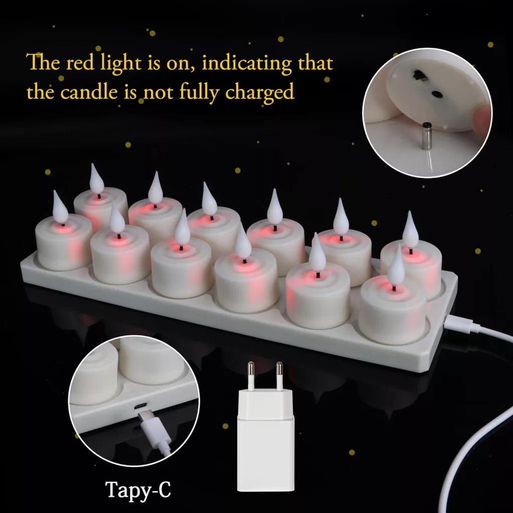 12 Darab Töltővel Rendelkező LED Teafény Távirányítóval - Dekoratív Gyertyák Termék Áttekintés