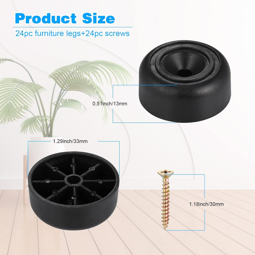 Ez a 24 darabos bútor láb szett a tökéletes megoldás, ha szeretnéd megvédeni a padlódat és csökkenteni a bútorok mozgatásakor keletkező zajt. A csavarható konstrukció lehetővé teszi az egyszerű és biztonságos rögzítést bármilyen bútoron. Az 33 mm átmérőjű, 13 mm magas lábak ideálisak kanapékhoz, asztalokhoz, szekrényekhez és egyéb bútorokhoz.