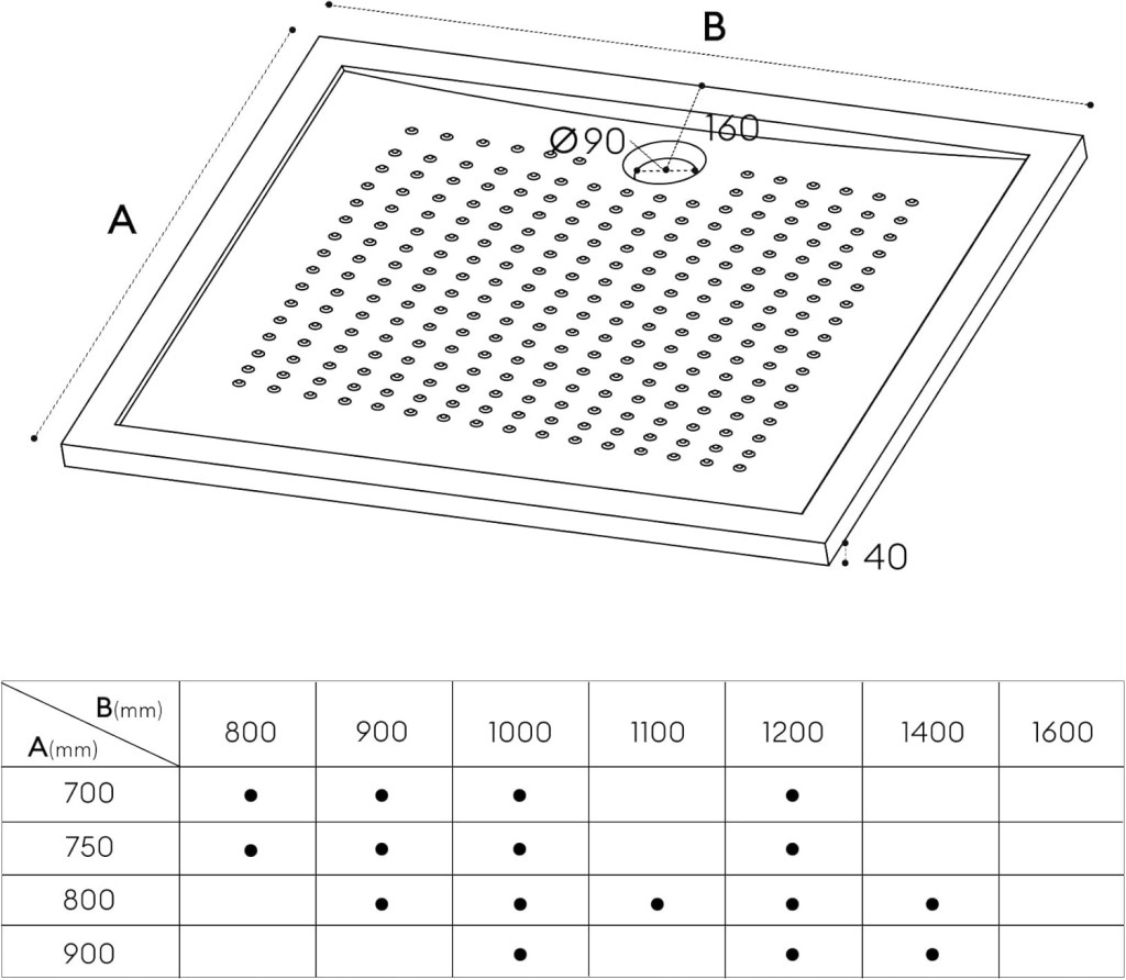 - Optimális méret: 70 x 100 x 4 cm-es téglalap alakú kialakítás, amely tökéletesen illeszkedik a modern fürdőszobákba