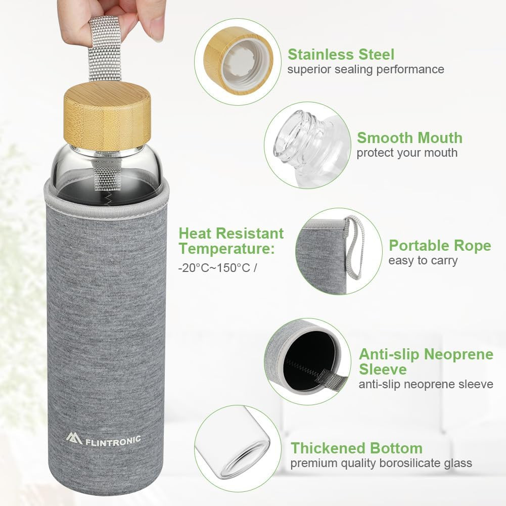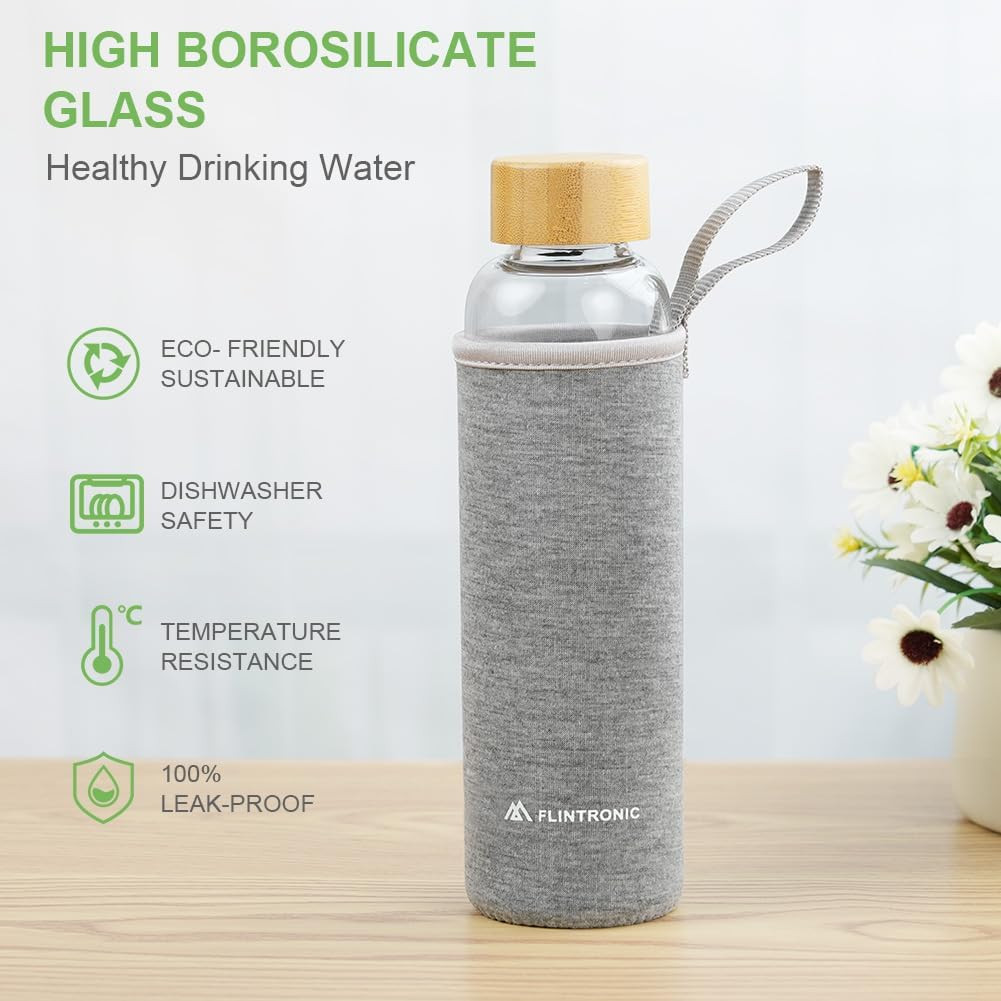 Összességében a flintronic 550 ml-es üveg kulacs kiváló választás mindazok számára, akik környezettudatos, egészséges és stílusos megoldást keresnek a mindennapi folyadékbevitelhez. A védőborítás extra biztonságot nyújt, miközben a boroszilikát üveg garantálja az italok tiszta ízét és a kulacs tartósságát.