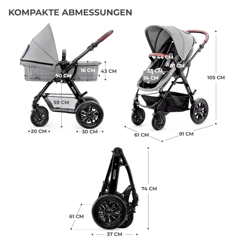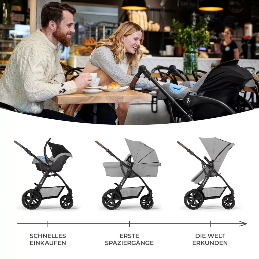 Kinderkraft Moov Multi idealan je izbor za roditelje koji traže sveobuhvatno rješenje. Košara za novorođenče može se koristiti do 9 kg (otprilike 6 mjeseci), velika je i duboka, opremljena mekim madracem. Dječja kolica mogu se koristiti od 6 mjeseci do 22 kg i mogu se podesiti u tri položaja naslona. Autosjedalica ECE 0+ (0-13 kg) može se pričvrstiti na okvir pomoću univerzalnih adaptera, tako da možete prenijeti dijete iz automobila izravno u kolica. Proizvod funkcionira i kao putni sustav, što je savršeno za duže izlete, putovanja i svakodnevnu upotrebu.