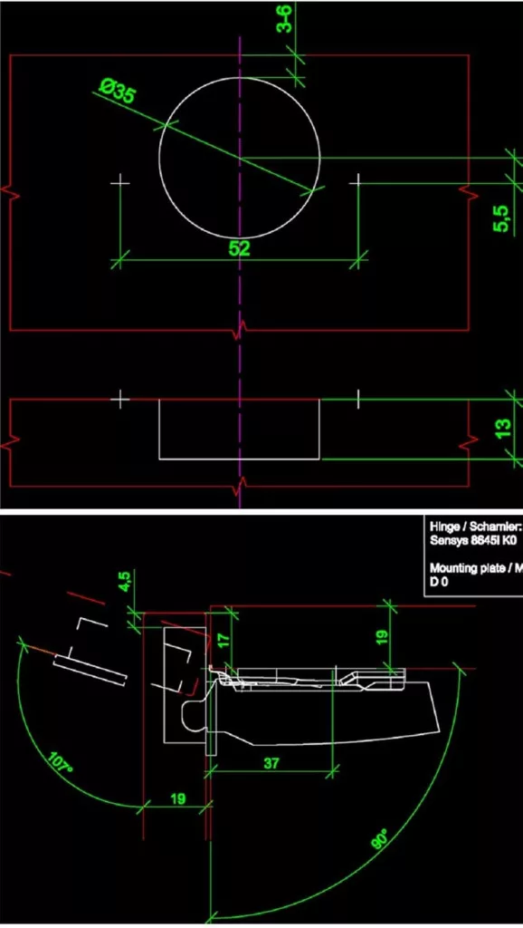 Tipp: A csuklópánt 35 mm-es potátmérőjével és 12,8 mm-es potmélységével kompatibilis a legtöbb modern bútor szabványával.