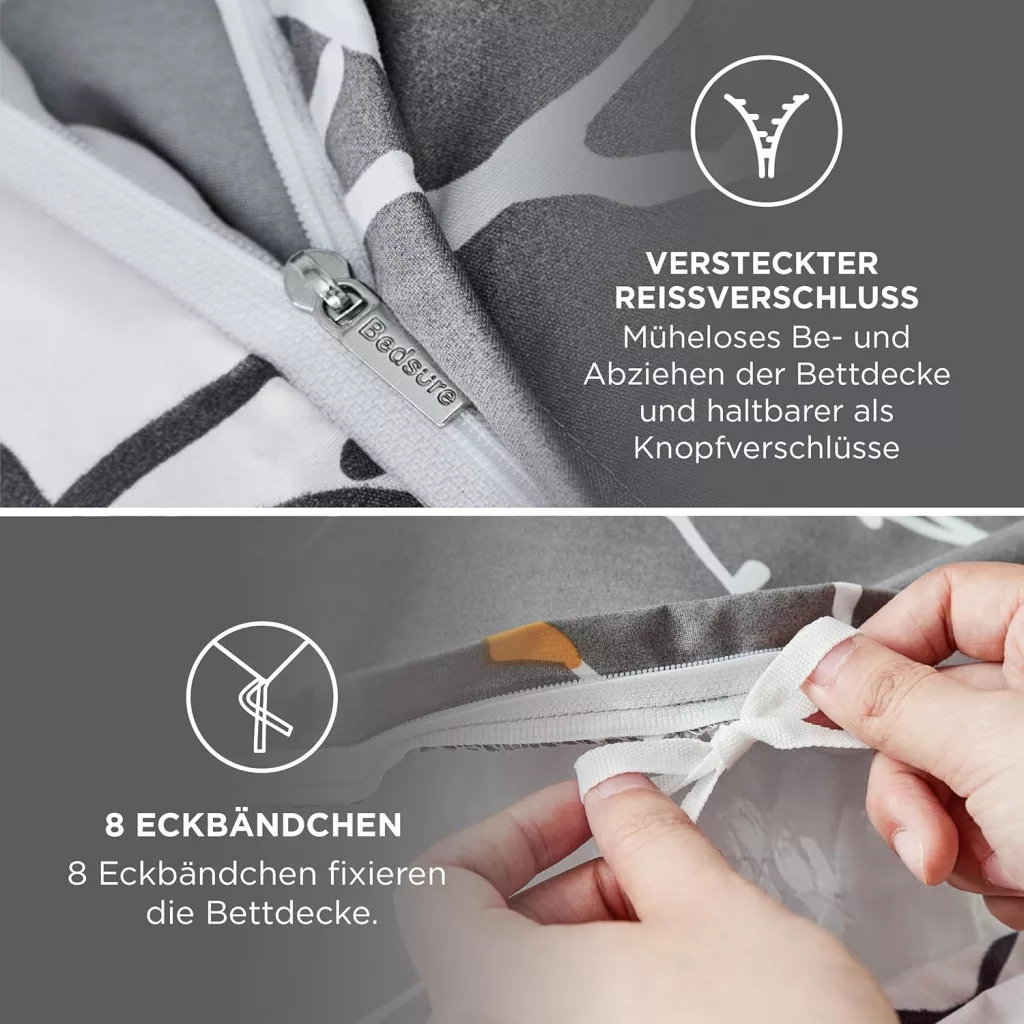 Ovaj set navlaka za poplun savršen je primjer Bedsureove predanosti kvaliteti i udobnosti. Inovativni sustav zatvaranja patentnim zatvaračem, vezice za kutove i hipoalergeni materijal osiguravaju da dobijete najbolje iskustvo spavanja.