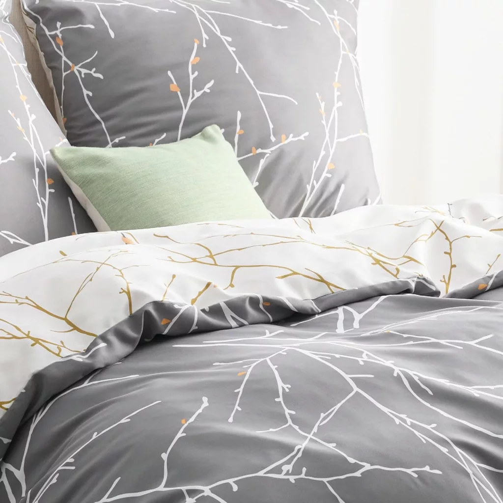Bedsure Ljetni Set Navlaka za Poplun 200x200 cm - Uzorak Sivih Grana