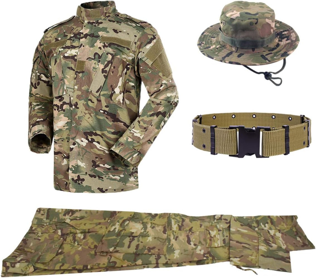 QHIU Taktikai Egyenruha Szett Férfiaknak - Kabát Nadrág Övvel és Kalappal Katonai Terepszínű BDU Airsoft Paintball Túrázás