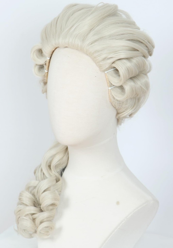 A Linfairy Washington Lawyer Curly Wig egy kiváló minőségű, autentikus 18. századi gyarmati paróka, amely tökéletes választás cosplay, jelmezverseny, történelmi rendezvény vagy tematikus buli számára. A világos szőke, göndör szálak valósnak kinéznek és puha tapintásúak, míg a magas hőmérsékletnek ellenálló szintetikus anyag biztosítja a tartósságot és a frizírozhatóságot.
