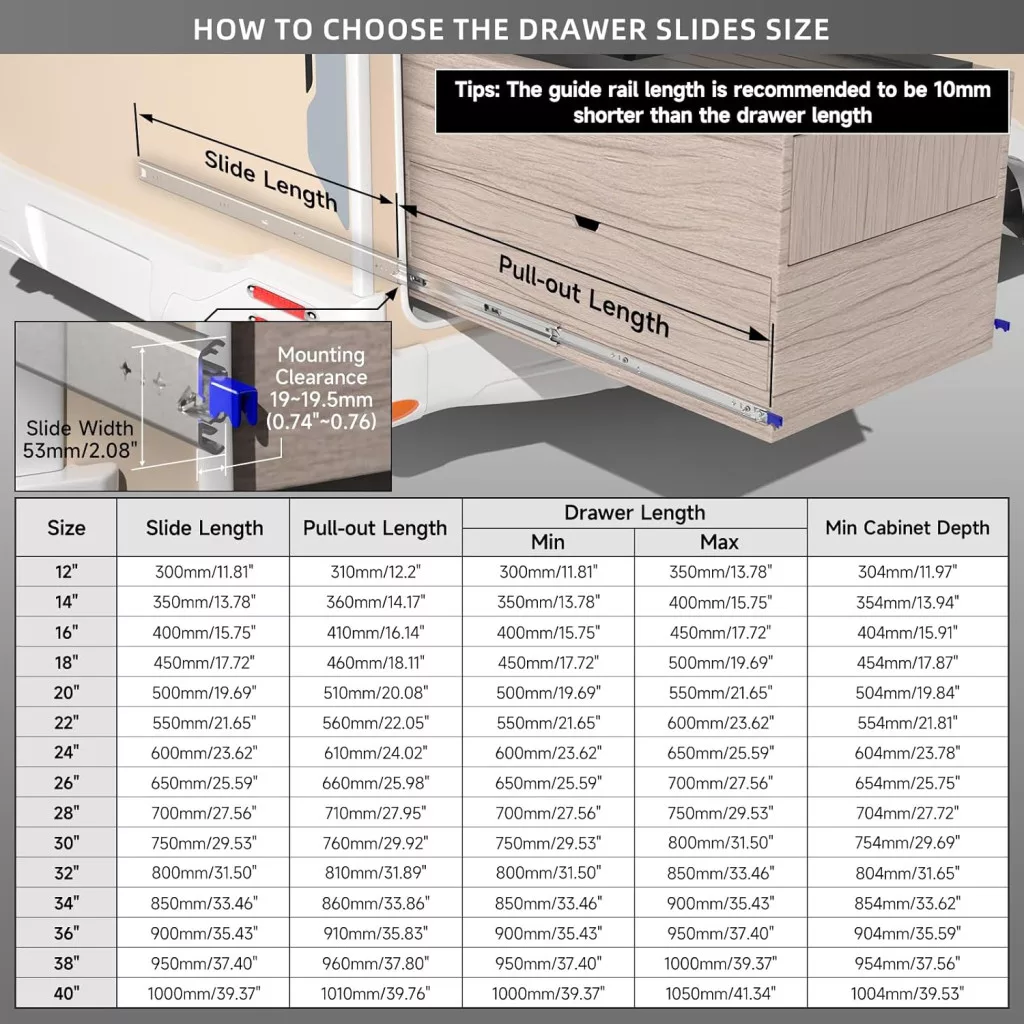 - Izmjerite dubinu ladice i odaberite odgovarajuću duljinu vodilice