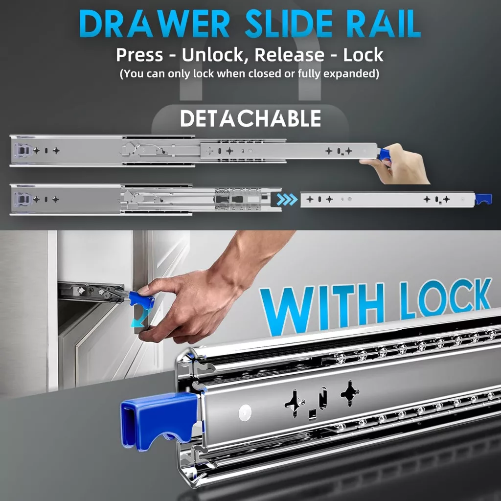 Vodilica za Ladice za Teška Opterećenja s Punim Izvlačenjem i Bravom - 120 kg Pregled proizvoda