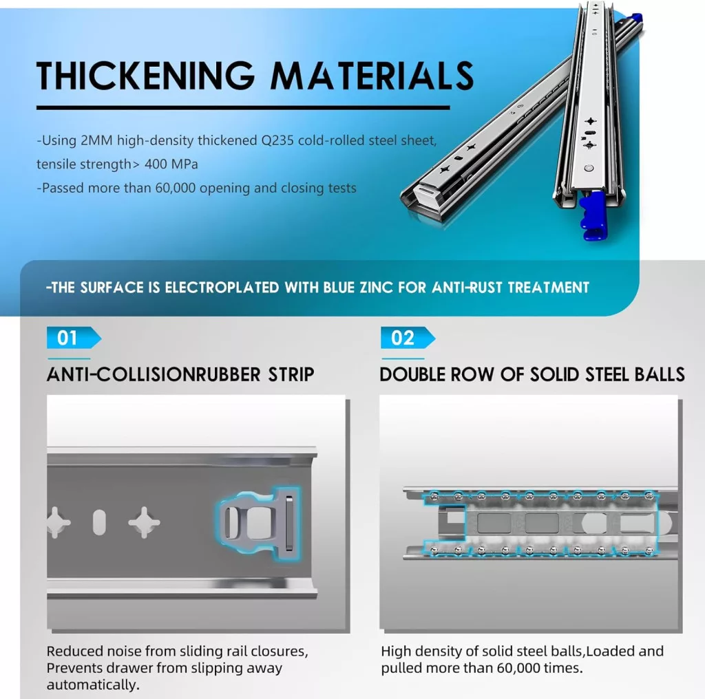 - Nosivost 120 kg: Par vodilica može podnijeti ladicu težine do 120 kg, što je prikladno za profesionalnu i industrijsku upotrebu