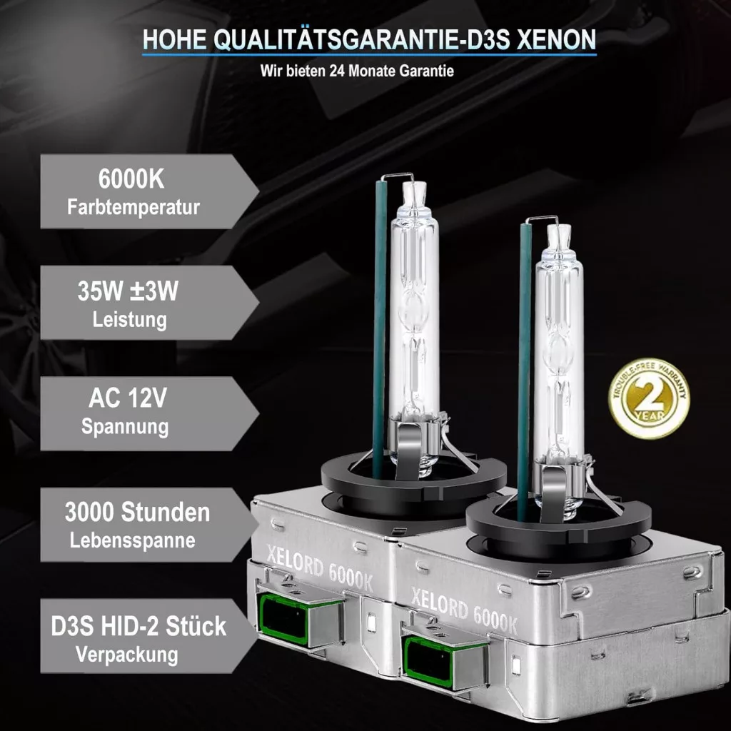 XELORD D3S Xenon HID fényszóró izzó 6000K gyémánt fehér 35W 12V 2db