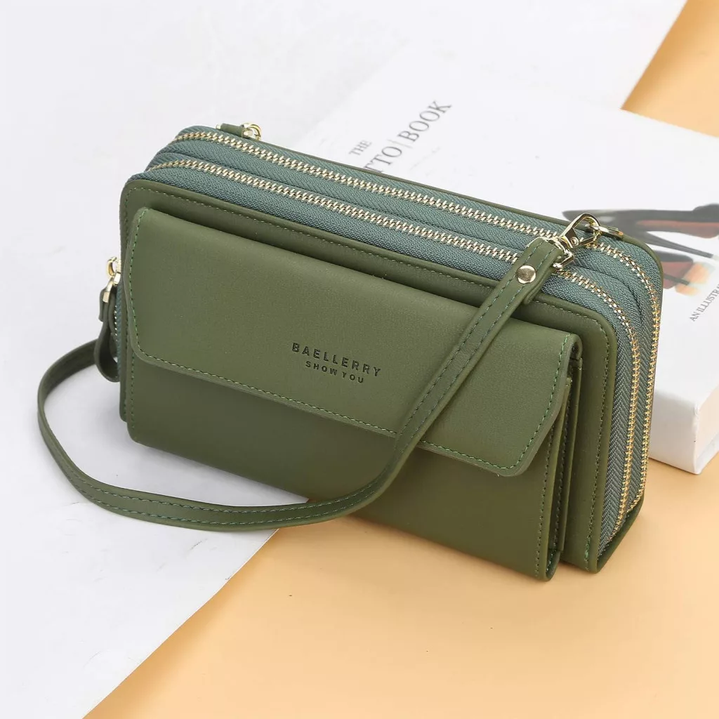 Ova elegantna i praktična ženska torba savršeno je rješenje za one koji žele imati sve važne stvari pri ruci u jednom elegantnom dodatku. Zelena PU kožna torba ne služi samo za sigurno pohranjivanje mobilnih telefona, već obavlja i funkcije punopravnog novčanika. Sa svojim dimenzijama od 20 x 11 x 6 cm idealna je veličina za udobno nošenje svaki dan, uz osiguravanje dovoljno prostora za najvažnije stvari.