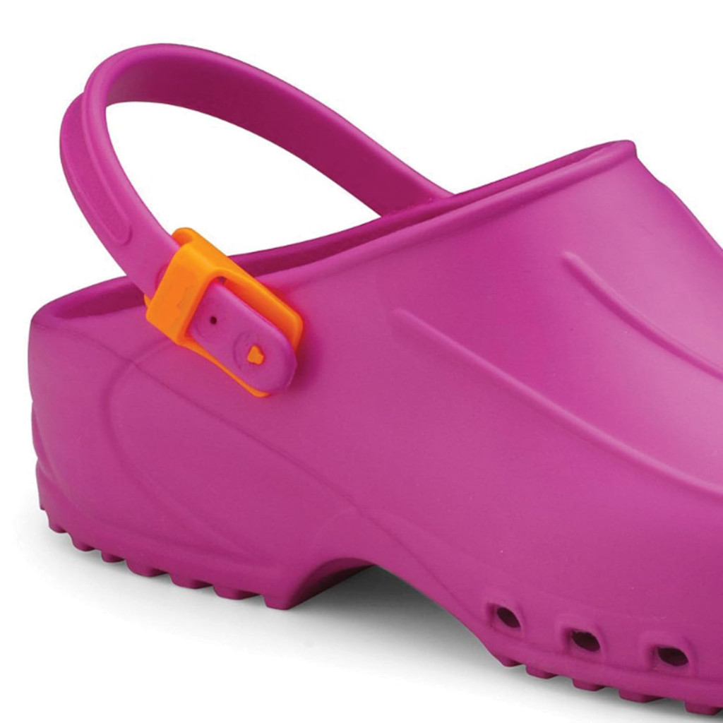 A papucs fuchsia színben kapható, amely nemcsak praktikus, hanem vizuálisan is vonzó. Az uniszex tervezés biztosítja, hogy férfiak és nők egyaránt kényelmes viselésben részesüljenek. A beépített szíj segítségével könnyedén rögzíthető a lábra, így biztonságos és stabil viseletet nyújt még a legmozgalmasabb munkakörnyezetben is.