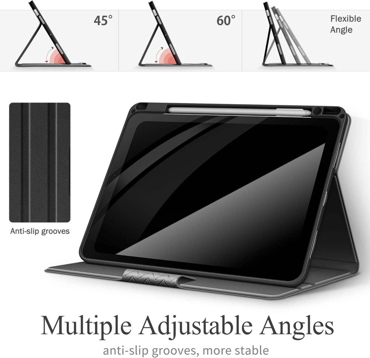 AUAUA iPad Air futrola 10.9-11" - Siva zaštitna futrola s držačem za Apple Pencil, funkcijom automatskog spavanja/buđenja, PU kožna obloga za iPad Air 4/5 generacije