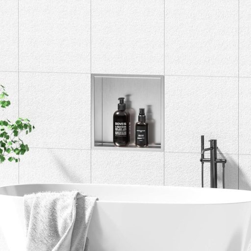 Za ugradnju police izrežite otvor odgovarajuće veličine u zidu. Koristite vodootporno brtvilo na rubovima za savršeno brtvljenje. Polica se može postaviti okomito i vodoravno, tako da možete fleksibilno dizajnirati sustav za pohranu u kupaonici.