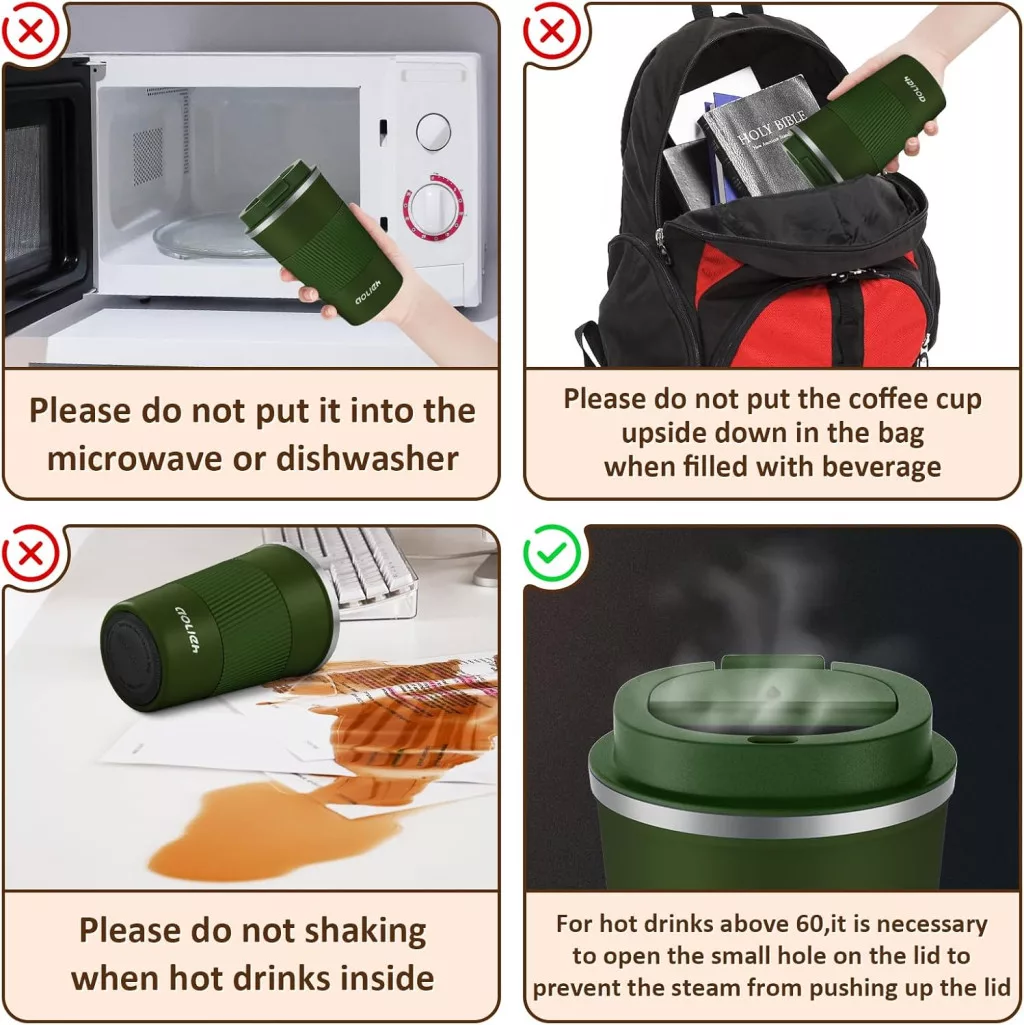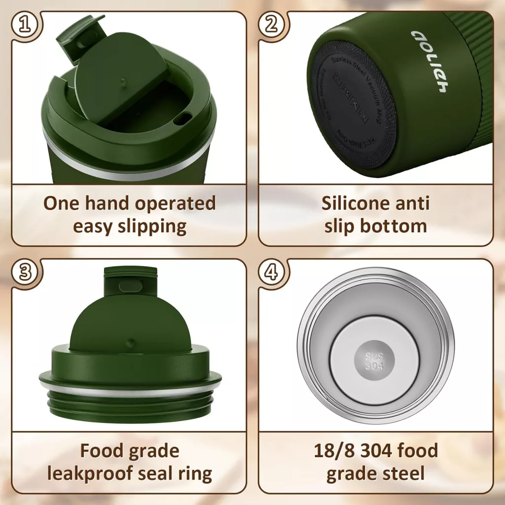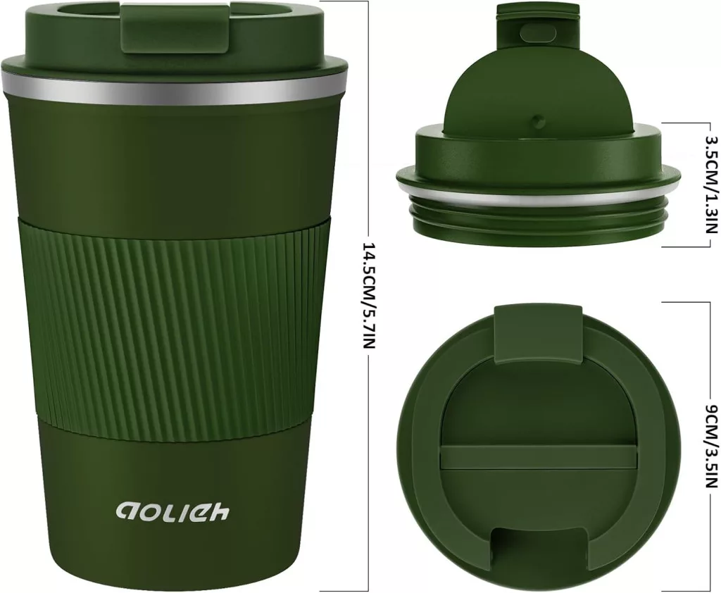 Aolieh Termo Putna Šalica 380ml Zelena - Nehrđajući Čelik, Poklopac na Stiskanje