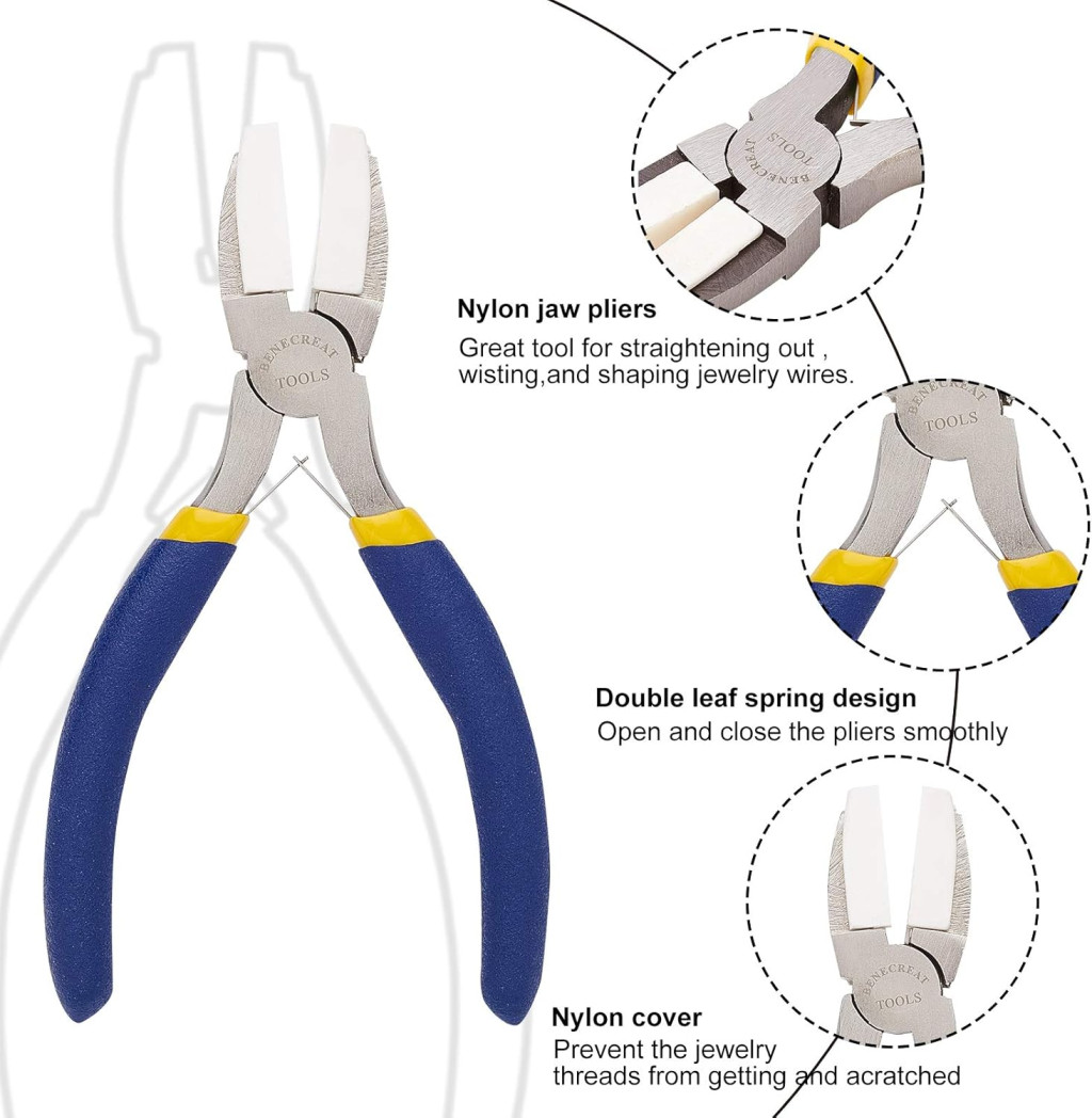 BENECREAT plosnate kliješta s dvostrukim najlonskim zubima i samoljepljivim čeljustima za izradu nakita, plava