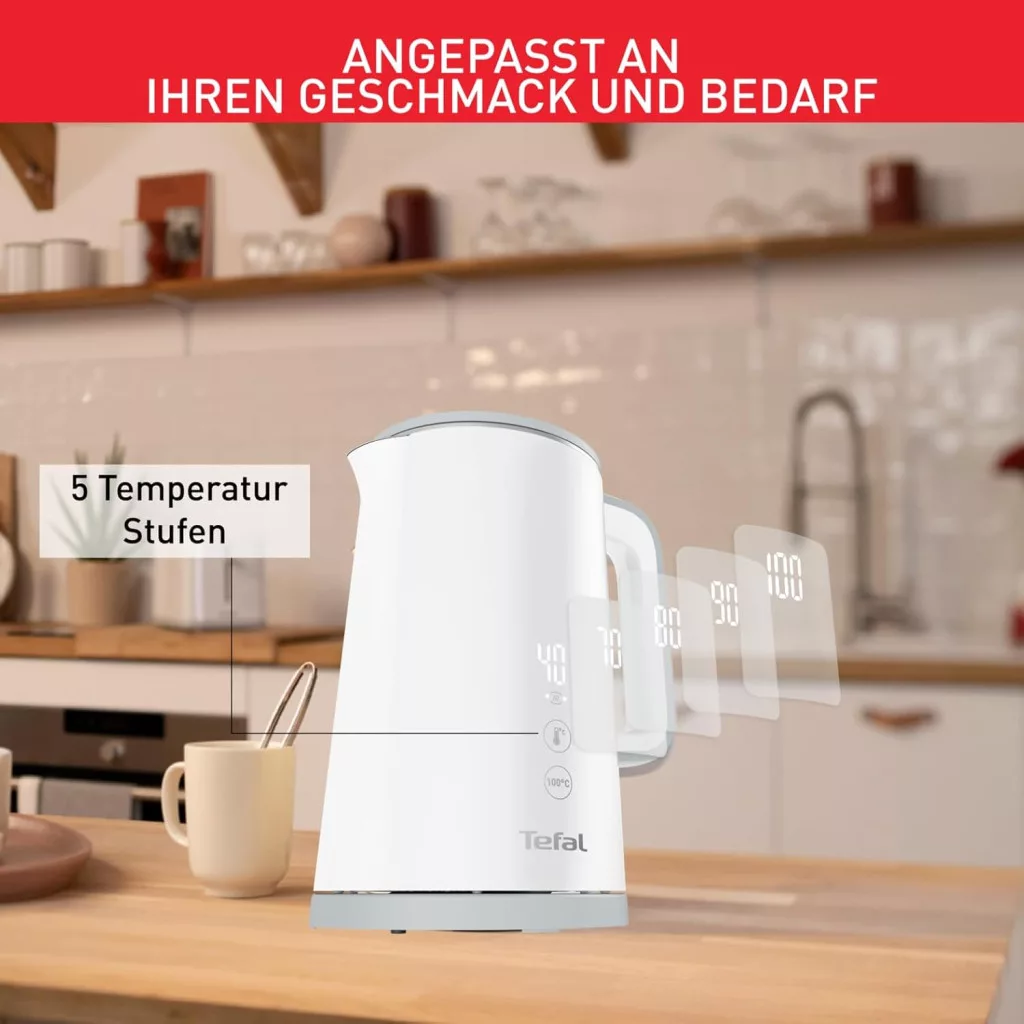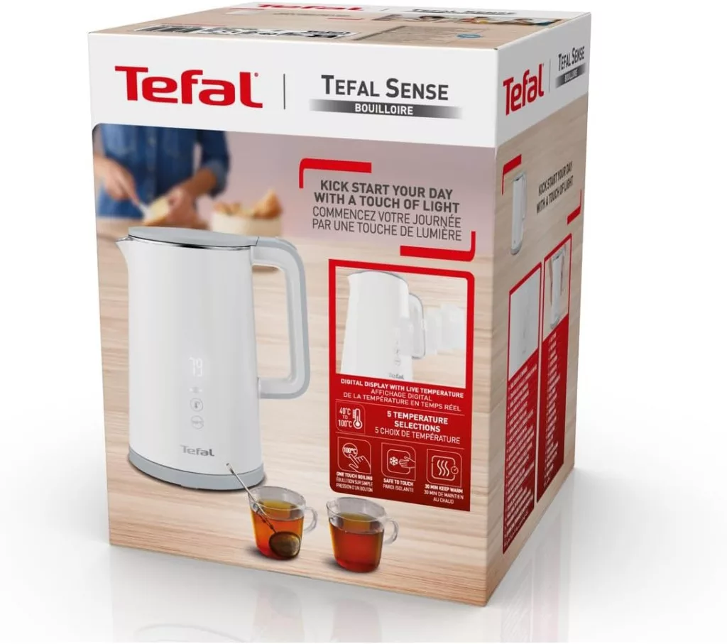 A Tefal KO6931 Sense vízforraló a tökéletes választás azok számára, akik értékelik a minőséget, a funkcionalitást és a megbízhatóságot. A Tefal 60 évnél hosszabb tapasztalattal rendelkezik a háztartási készülékek gyártásában, és ez a modell tökéletesen tükrözi ezt az örökséget. Az 5 hőmérséklet-szint lehetővé teszi a különféle italok és ételek optimális elkészítését, míg a 30 perces melegítési funkció biztosítja, hogy a víz mindig a megfelelő hőmérsékleten maradjon.