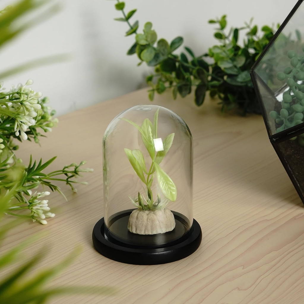 - Stabil fa alap: Az MDF alapú fekete fa talp speciális hornyokkal rendelkezik, amely biztosan rögzíti az üvegharangot és megakadályozza a mozgást