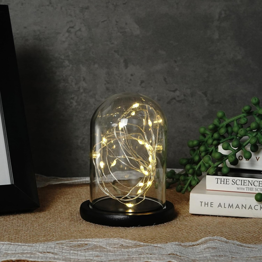 Tipp: Helyezzen tündérfényeket vagy elemmel működő teafényeket az üvegharang belsejébe a varázslatosan szép hatás érdekében. Ez különösen szép lehet az esti dekorációban vagy az ünnepi időszakban.